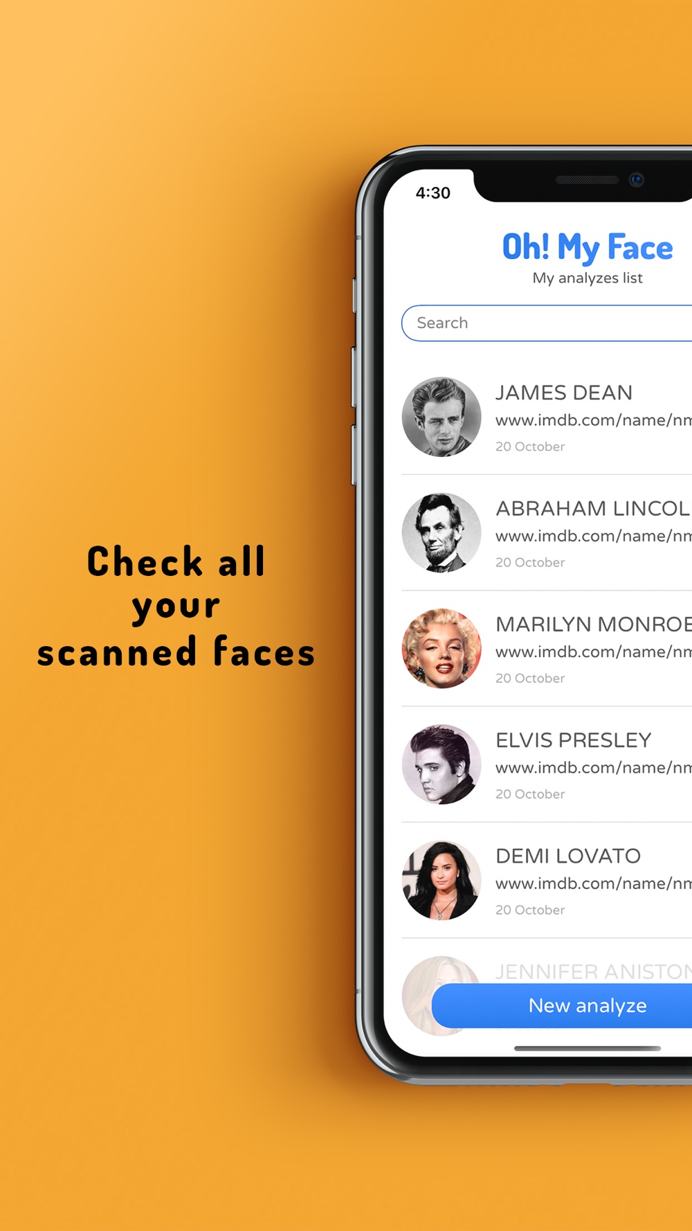 The application keeps a history of your scans, so you can check the celebrities you scanned.