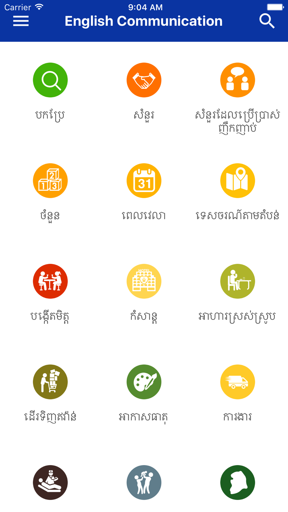 Learning English communication application supports learning to communicate with him intuitive, effective, and not boring on the smartphone. Application helps you improve your ability to communicate in English, support learning, study, travel, study abroad, export labor ...