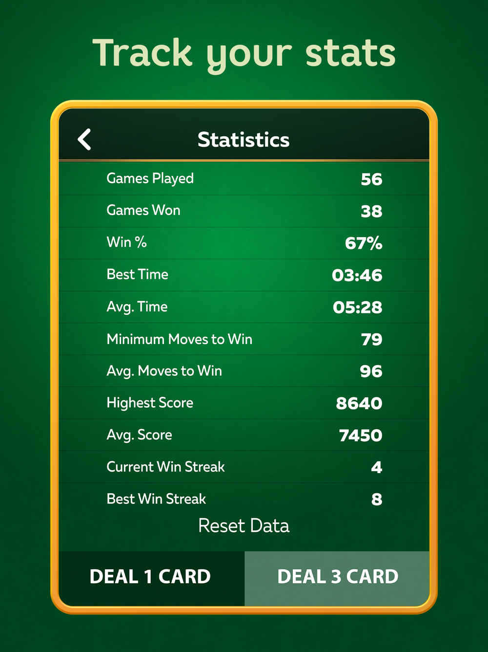 Check out our awesome Solitaire Game Features: