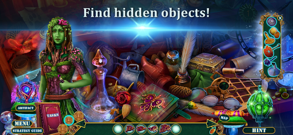 Find and collect all the statuettes and finding objects game to learn about the Kinzuls, all the examples of medallions to find out about the magic creatures inhabiting the Woods, and use Phoenix Feathers to purchase items for your Laboratory!