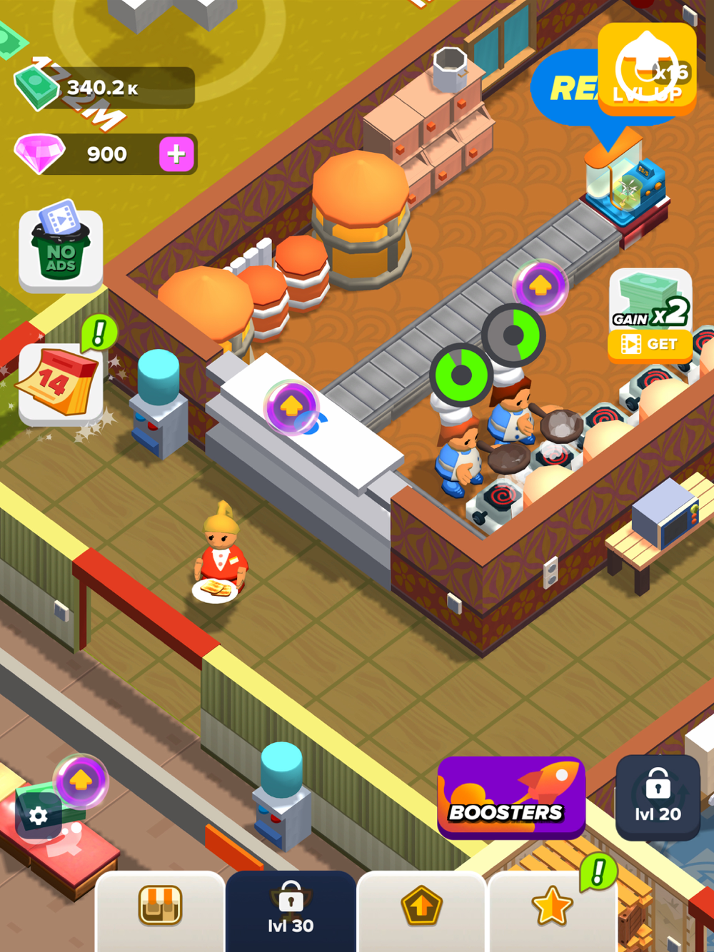 Earn money as you progress through the improvement of your kitchen and then manage the expansion of your ownership!