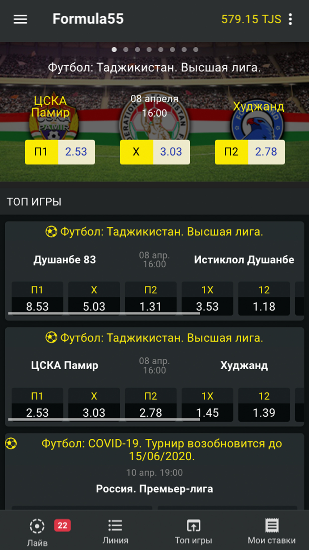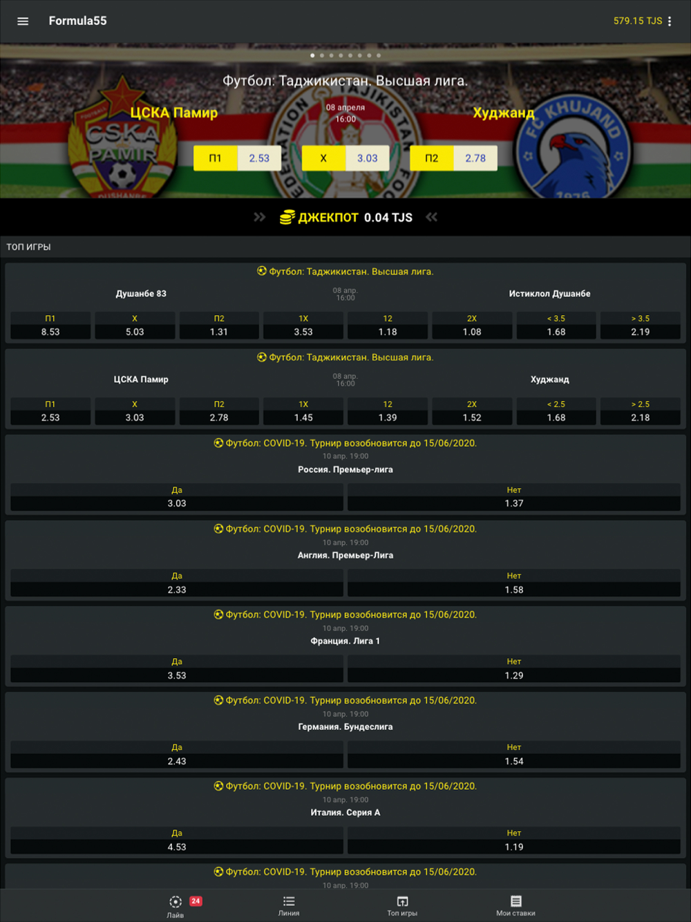 Хочешь быть в курсе всех спортивных событий 24/7? Делать ставки независимо от своего местонахождения? Тогда скачай мобильное приложение "Formula 55"!