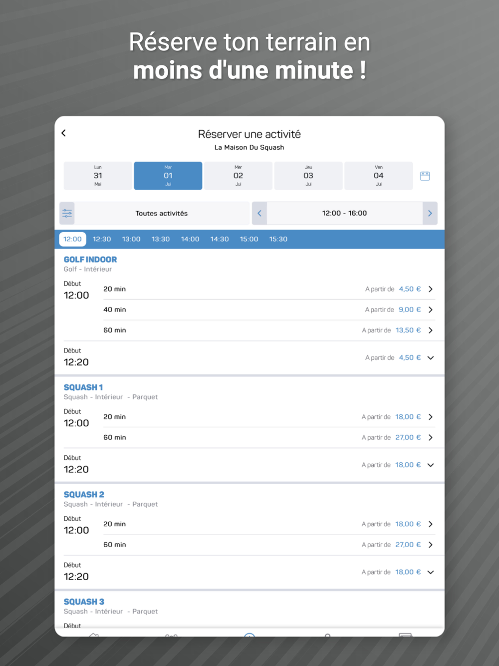 Organise tes matchs en 2 clics et rejoins une communauté de joueurs de squash autour de toi !