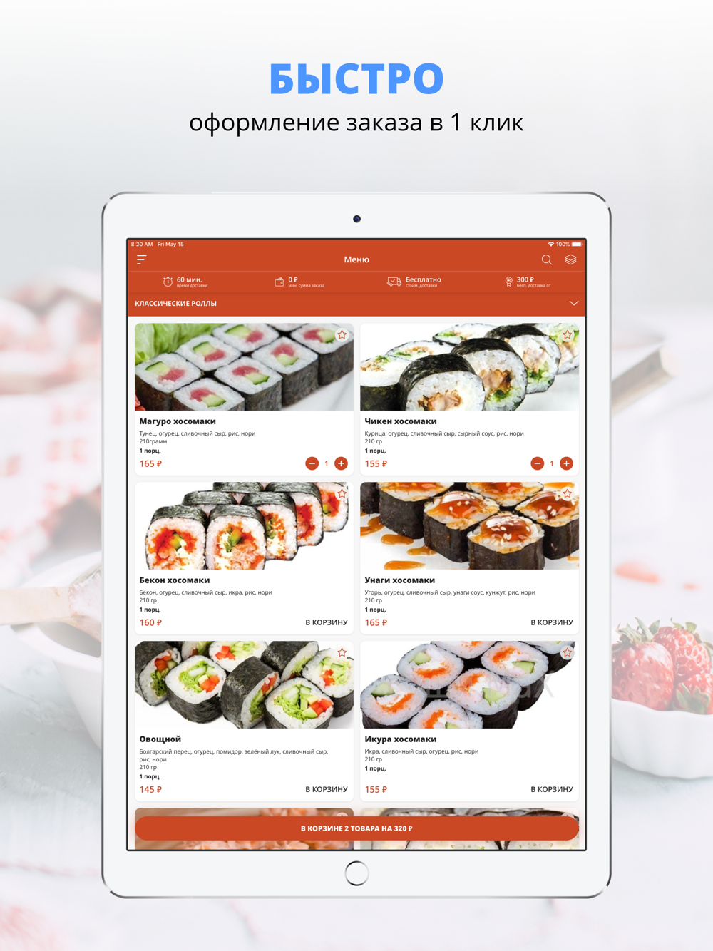 Самые вкусные роллы! Только большая начинка! Наше меню приятно удивит Вас большими порциями и низкими ценами! Любое блюдо можно скорректировать на Ваш вкус. Скидки на самовывоз!