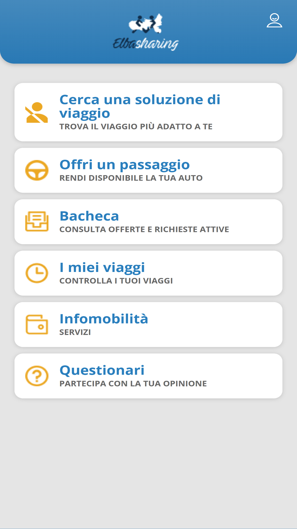 Visita l’Elba godendo di un’esperienza insolita, utilizzando i servizi locali, contribuendo alla sua sostenibilità e preservandone il patrimonio naturale. Vuoi lasciare l’auto a casa? Con Elba Sharing puoi visionare tutte le offerte di condivisione viaggio con auto privata o taxi e concordare un passaggio. Inoltre puoi capire come raggiungere l’isola e muoversi all’interno con il trasporto pubblico. Non ci sono soluzioni convenienti? Non ti preoccupare, pubblica la tua richiesta e attendi una risposta da chi ti può offrire un passaggio. Oppure accedi ai servizi di noleggio locale, verificane la disponibilità e contattali in base alle tue necessità. Vuoi comunque arrivare in auto? L’APP ti indica dove parcheggiare. Perché non offri un passaggio, riducendo i costi e le auto circolanti? Potresti, inoltre, trovare un nuovo amico/a. Pubblica la tua offerta per essere contattato. Infine con la APP Elba Sharing, potrai dare un giudizio sui servizi di mobilità nell’isola e aiutarci a migliorarla.