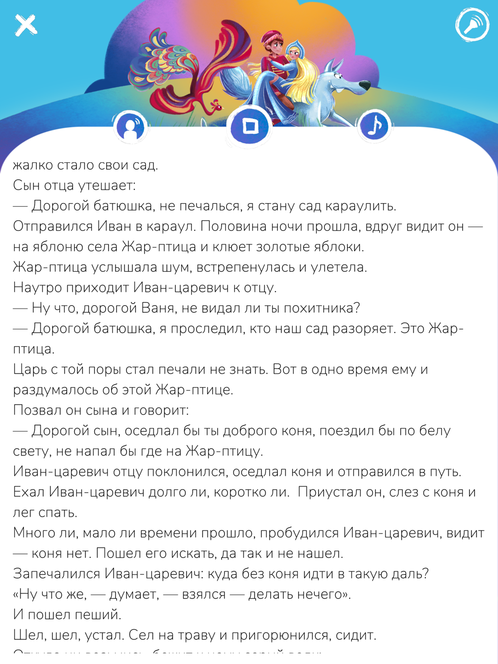 Зайдите в раздел сказок, выберите подходящую и включите текст. Автоматически
