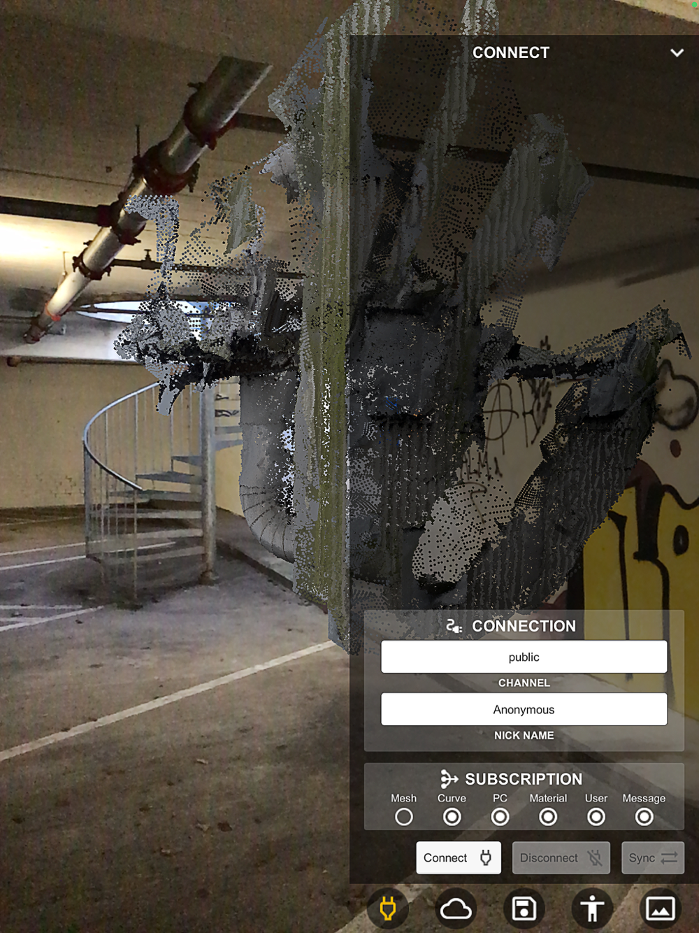 Subscribable content so far includes meshes, point clouds, curves/polylines, materials, messages, control and other users. You control the scale of the received content, general properties as well as the world it inhabits.