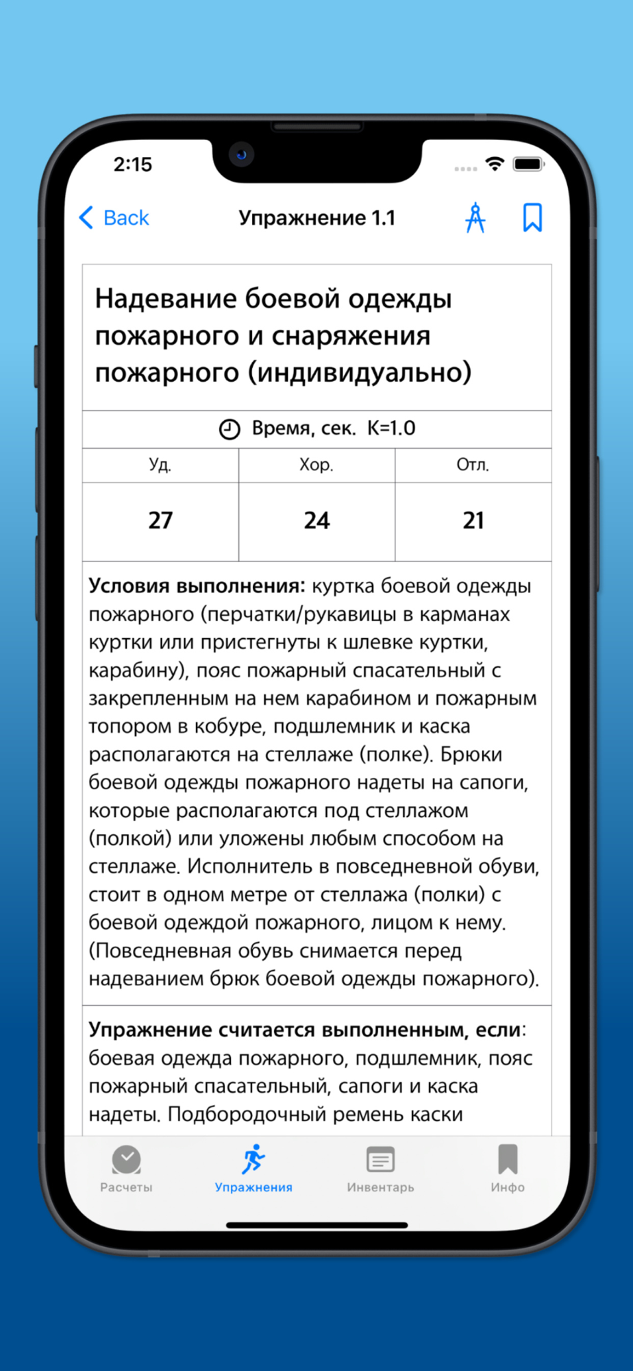 БрандМастер позволяет рассчитать параметры работы в средствах индивидуальной защиты органов дыхания и зрения и выводит подробный результат в удобном формате. Для аппаратов на сжатом воздухе и кислороде.