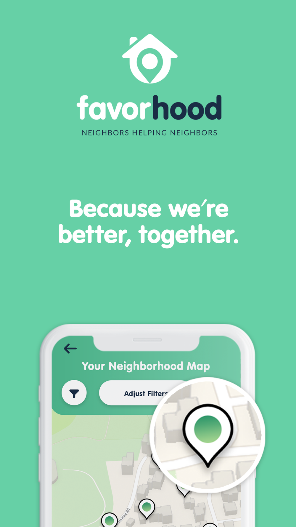 Favorhood actively connects neighbors in need with neighbors who can help based on each neighbors preferences and location. The app then facilitates the ability for neighbors to connect via in-app messaging inside the app.