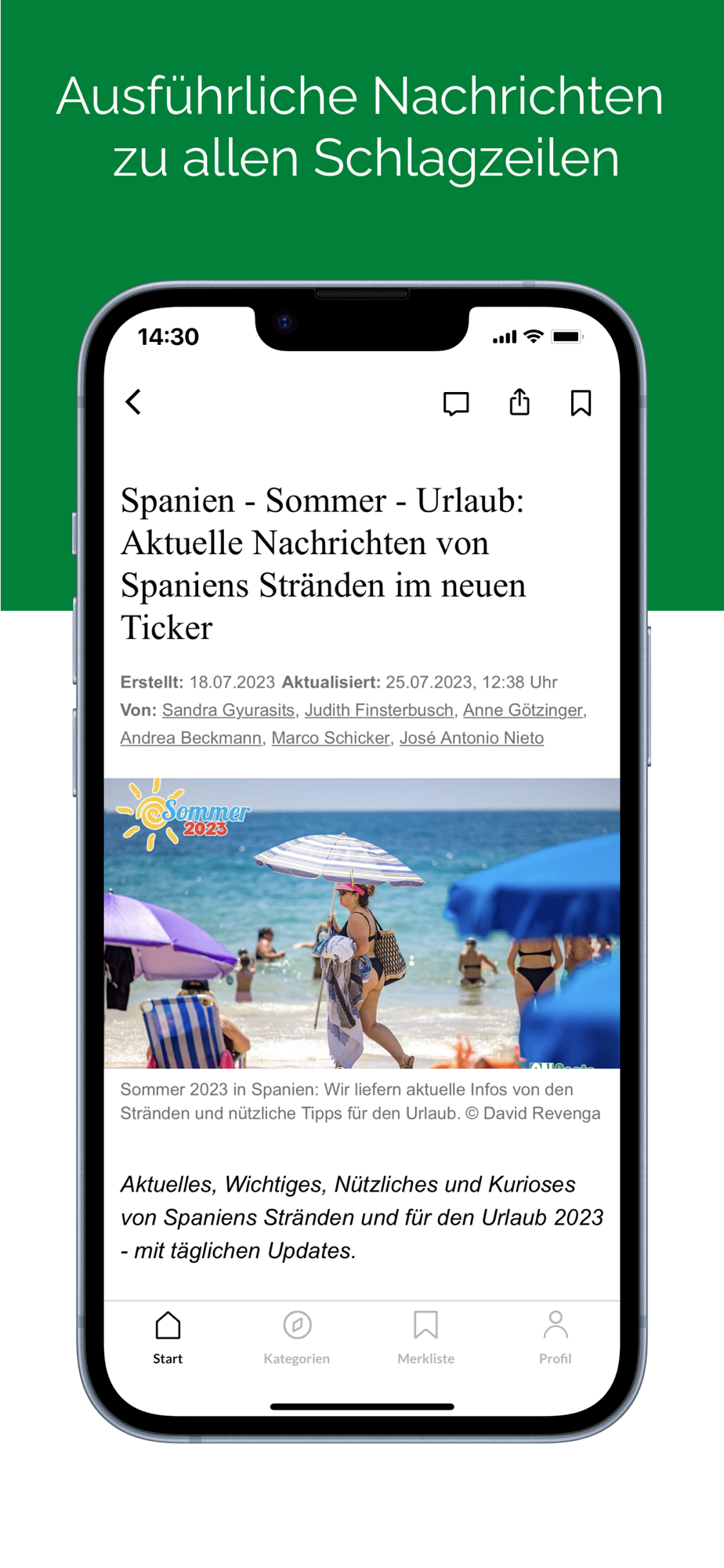 Die kostenlose App von Costa Nachrichten liefert Ihnen aktuelle Nachrichten aus Spanien mit Fokus auf die Küsten Costa Blanca, Costa Cálida und Costa del Sol. Hier erfahren Sie zuerst, was es Neues an der Mittelmeerküste gibt, welche Ausflüge sich lohnen, was Urlauber wissen müssen und welche steuerlichen und rechtlichen Regelungen für in Spanien lebende Deutsche, Österreicher oder Schweizer gelten.