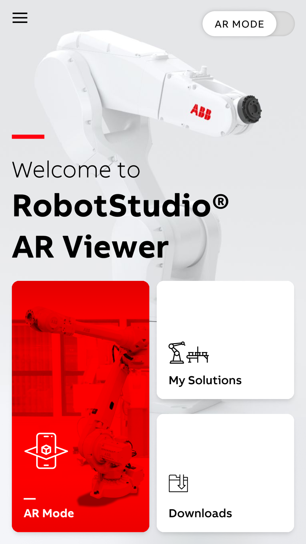 RobotStudio® AR Viewer is an Augmented Reality application for smartphones and tablets to discover and visualize in the real environment or in 3D, ABB robots and robotic solutions created in the RobotStudio® desktop app. With the RobotStudio AR Viewer app, you get an exact copy of the ABB robots and robotic solutions in real size and with the animation accurately reflected.
