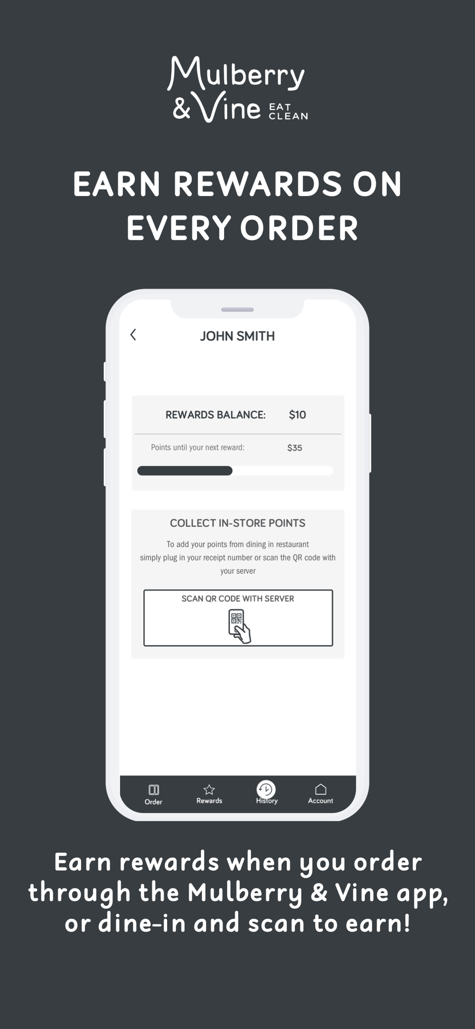 Using the Mulberry & Vine app is the fastest way to order your favorite plates and bowls without having to wait in line. You can locate the closest restaurant, place orders for pickup or delivery, and join our new loyalty program (get $8 for every $80 spent!). Live Dirty Eat Clean.