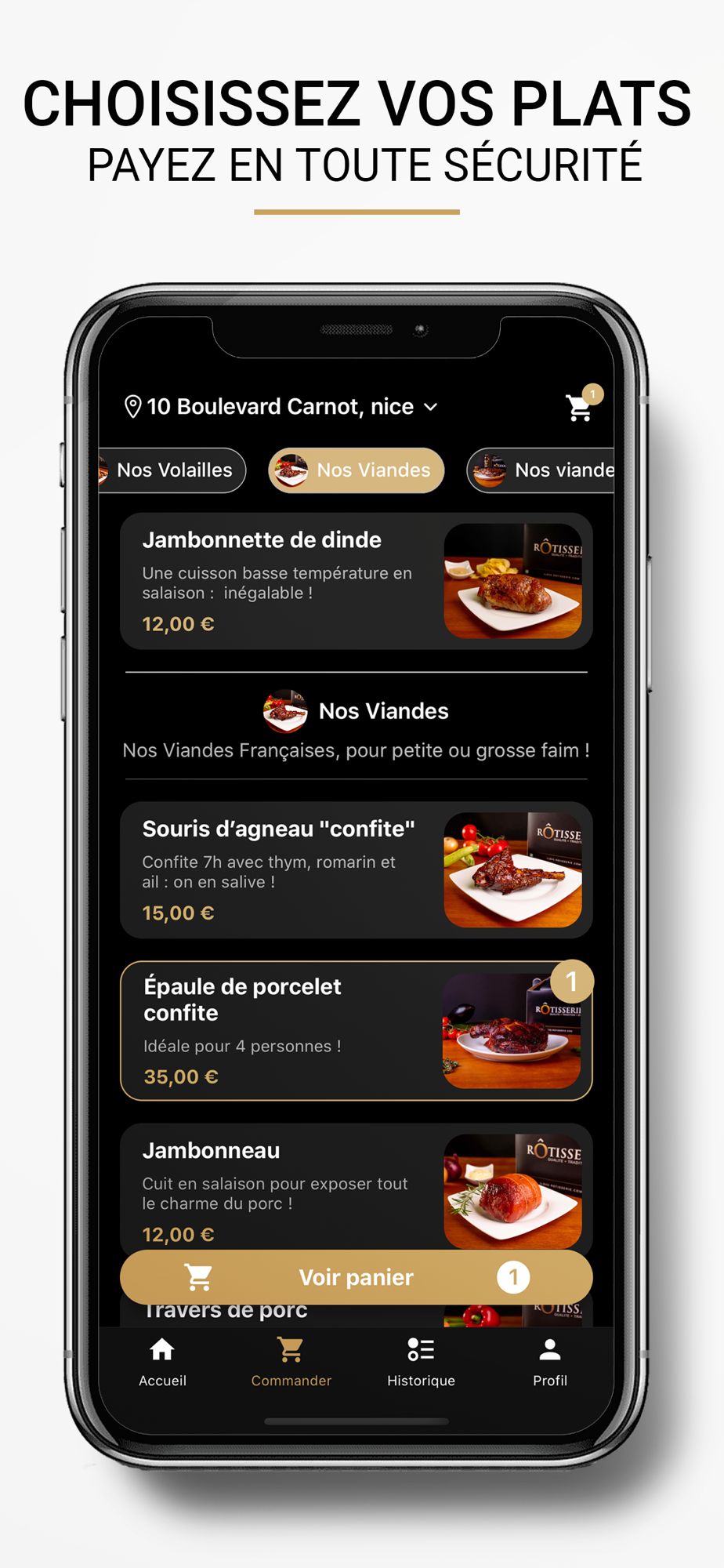 Chez Rôtisserie, vous trouverez des viandes et volailles rôties de qualité. Des produits frais, choisis avec plus grand soin, bio dès que possible et cuisinés maison : Poulet rôti, selle d'agneau, travers de porc.., à accompagner de gratin de légumes, ratatouille, gratin dauphinois, pommes de terre ou légumes frais poêlés.