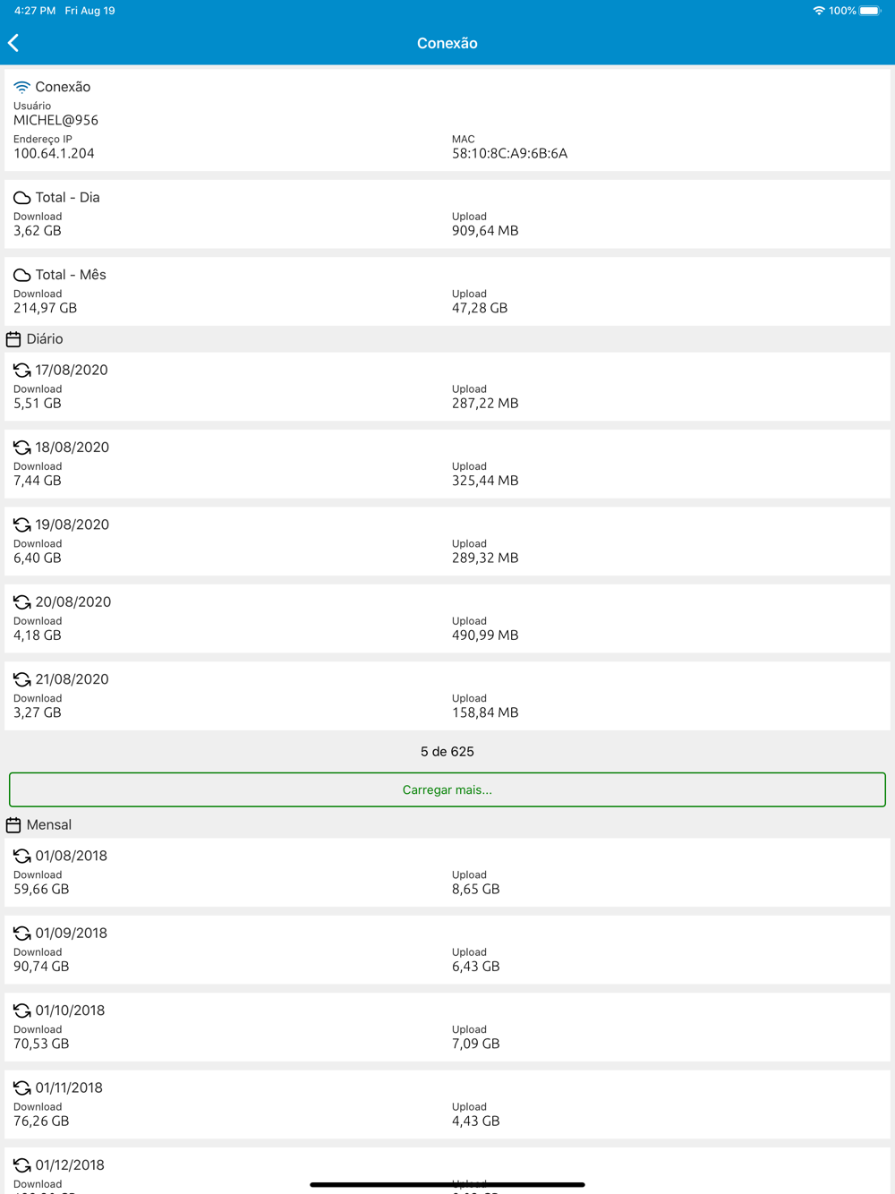 * Consulte seu consumo de rede