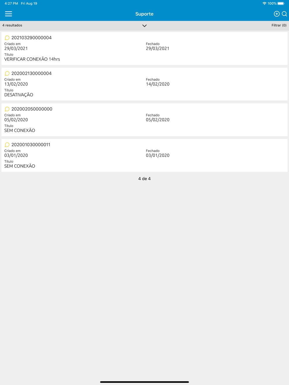 * Abra um suporte técnico e interaja com nossa equipe