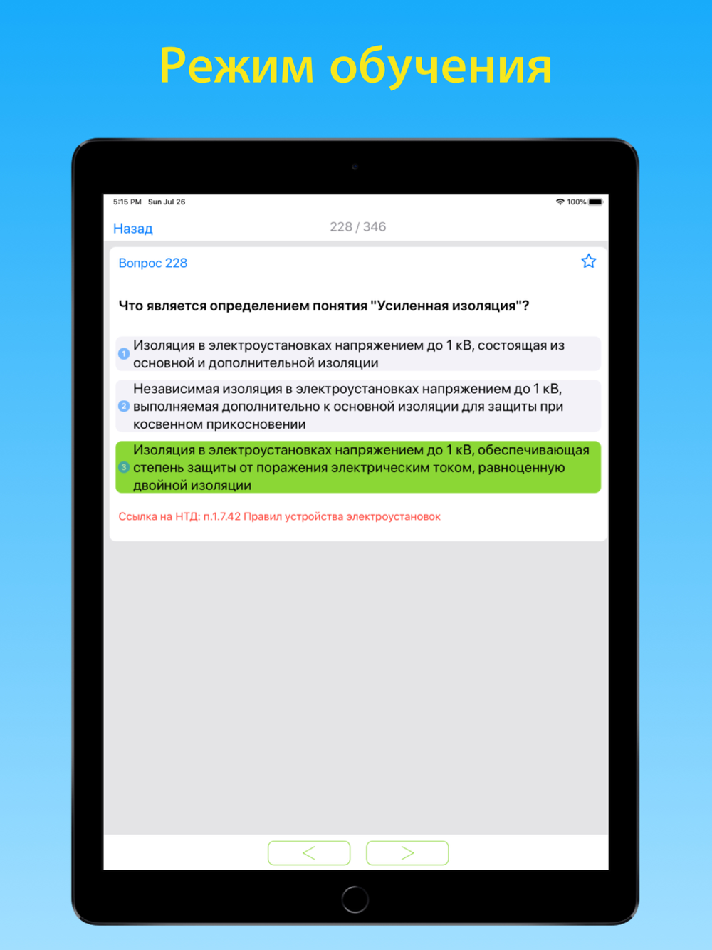 • Подготовка - Позволяет изучить вопросы в текстовом формате с отмеченными правильными ответами;