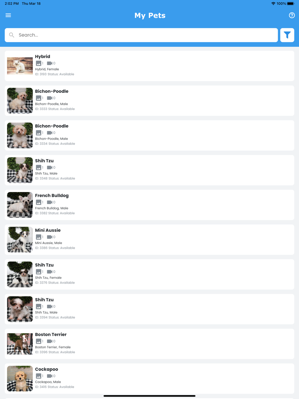 Pet Tracker Mobile allows you to quickly add new images and videos, manage existing images and videos, crop, and sort images and videos of pets you have in Pet Tracker.