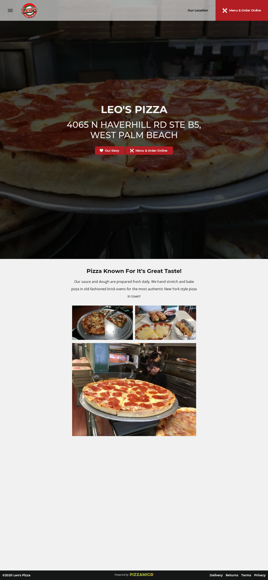 Online ordering for Leo's Pizza in West Palm Beach, Florida.