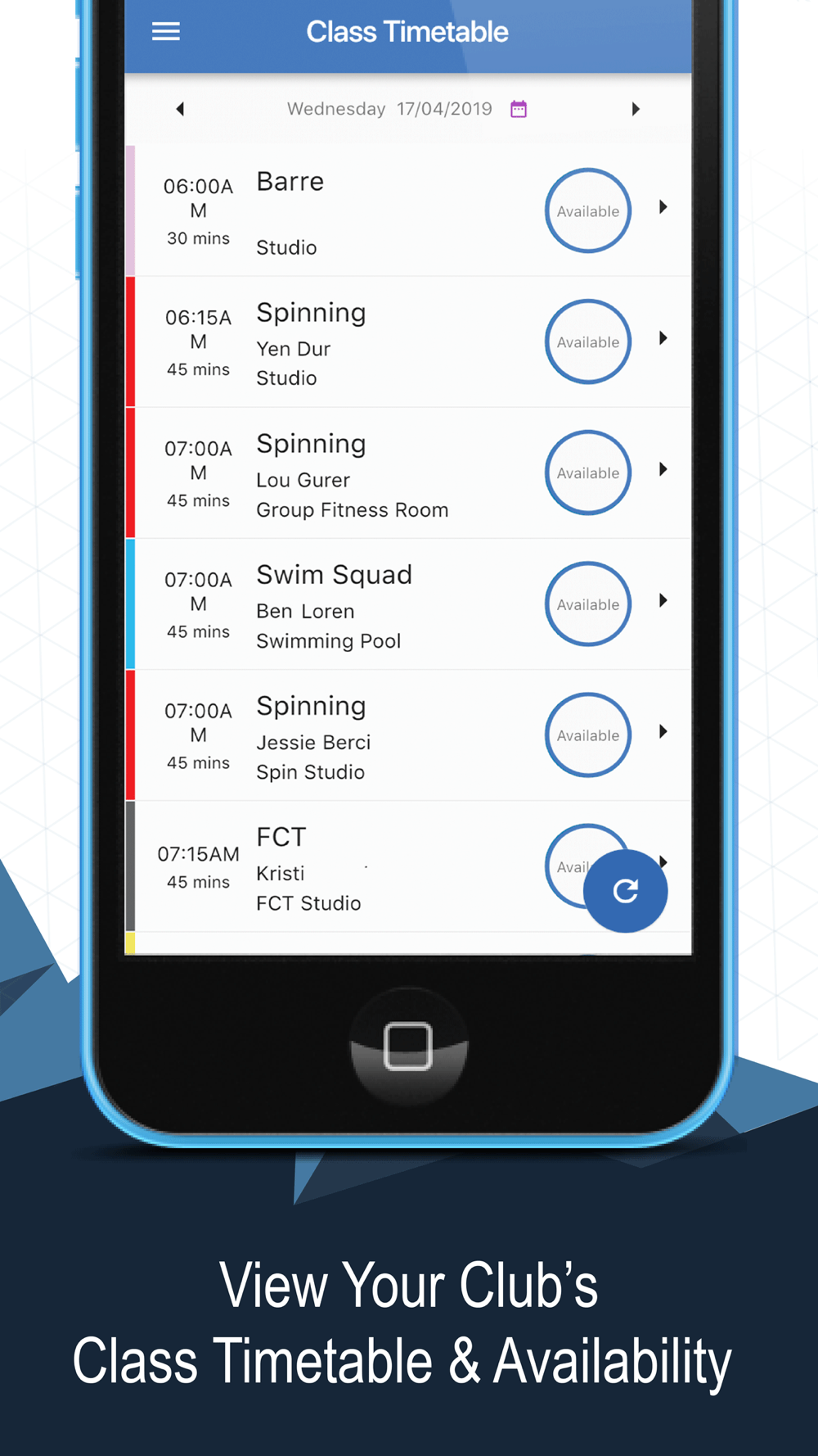 Easily view your gym's full timetable in real time. You can see who's running the class, whether the class is full and quickly secure your spot with the push of a button.
