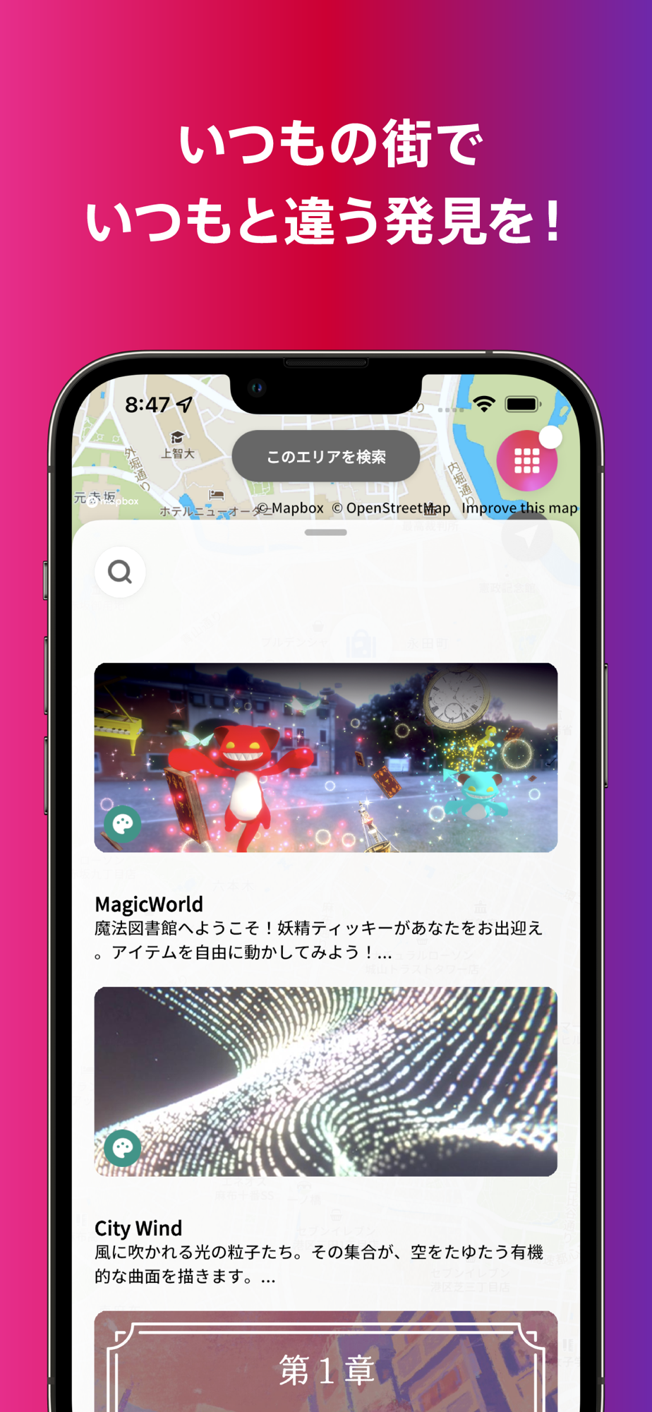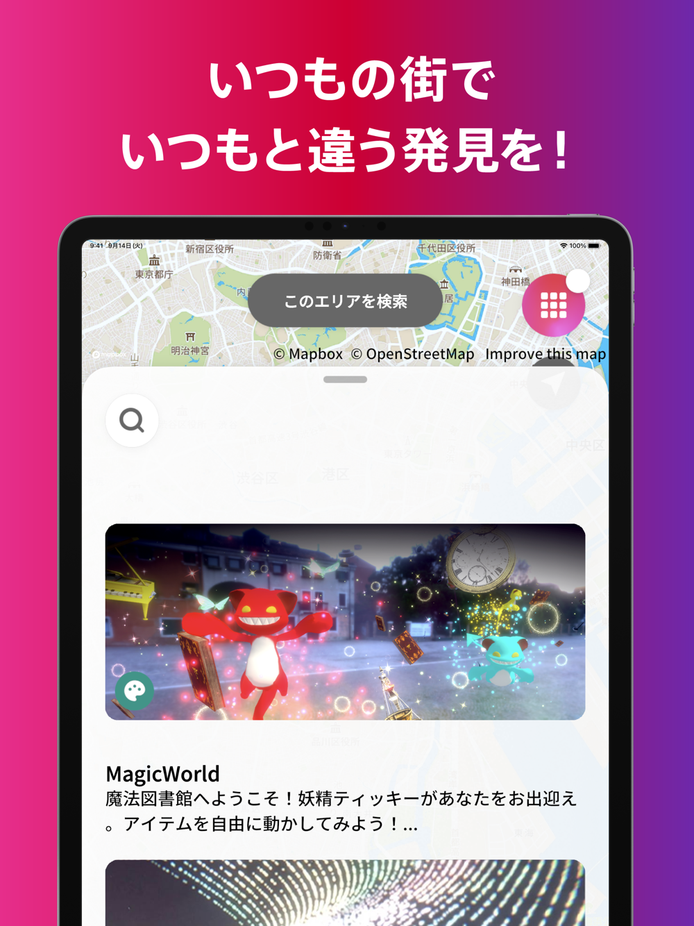 ※AR体験スポットの施設が閉館している時間帯、周辺の明るさが十分でない時間帯など、AR体験スポットの環境により体験できない場合があります。