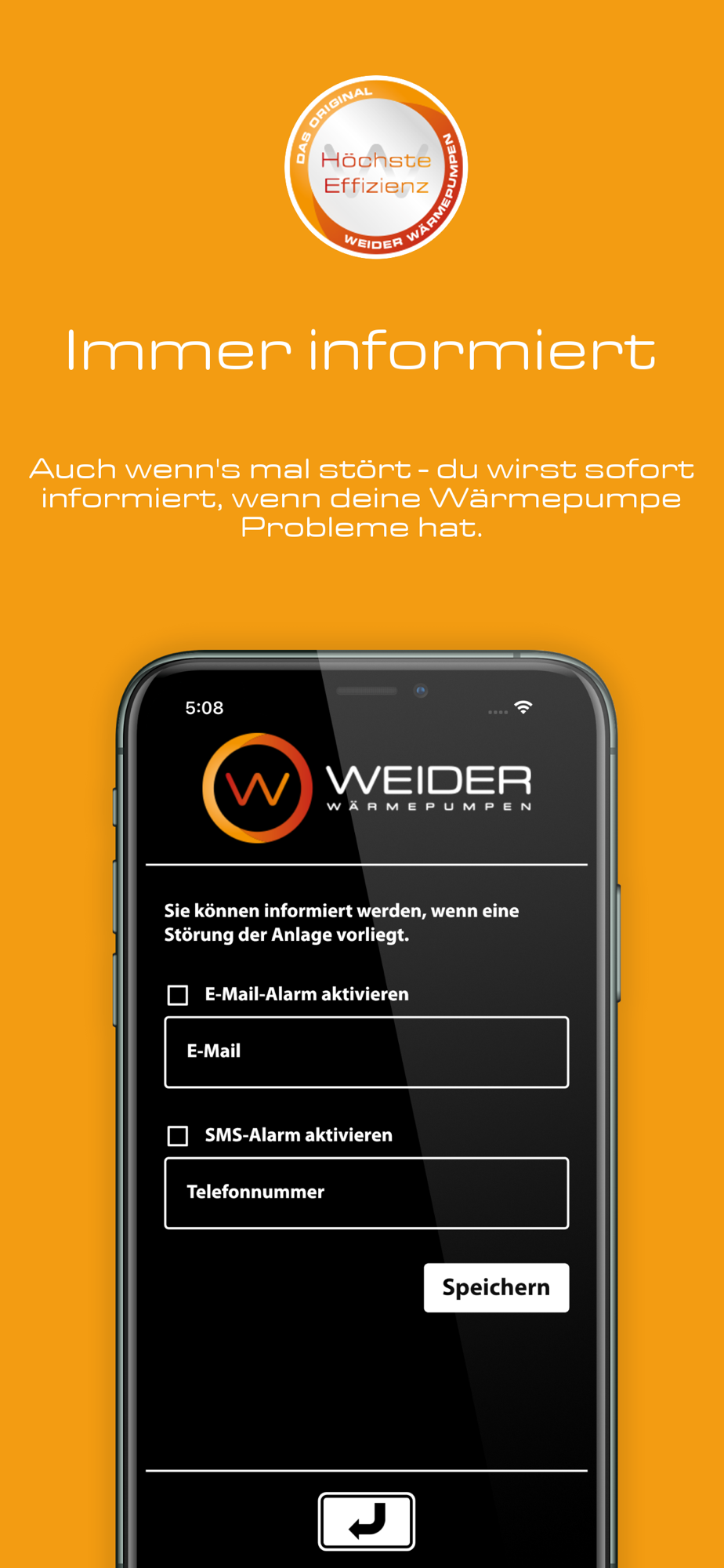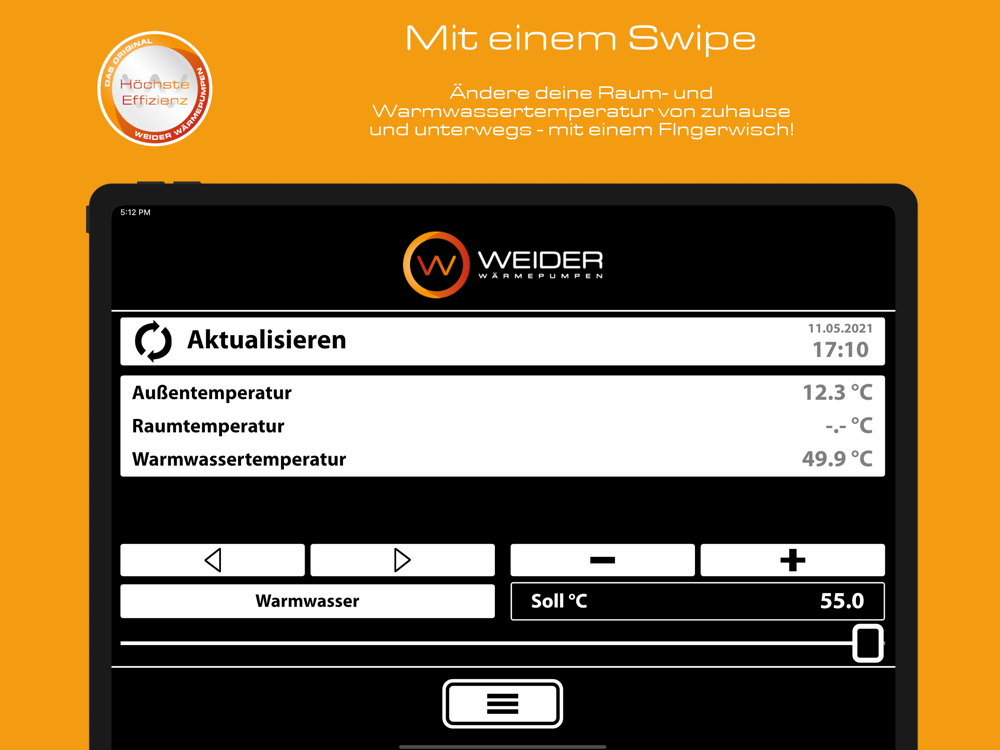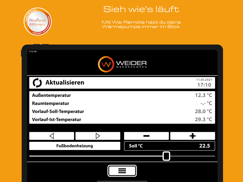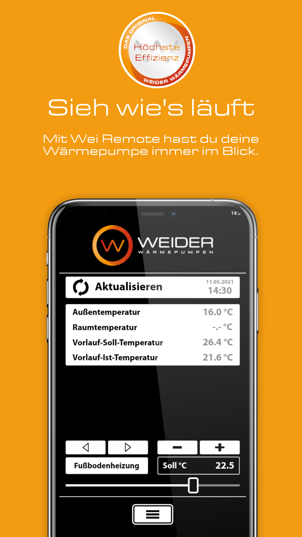 Das ist die Smartphone-Fernsteuerung für deine Weider Wärmepumpe.