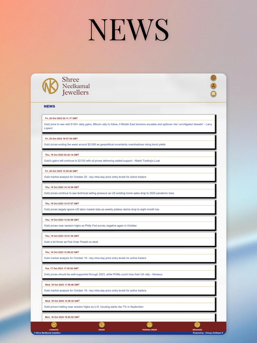 Shree Neelkamal Jewellers is now offering Online Mobile Trading App to broadcast its Live Rates of Gold for their Clients and sub-dealers.
