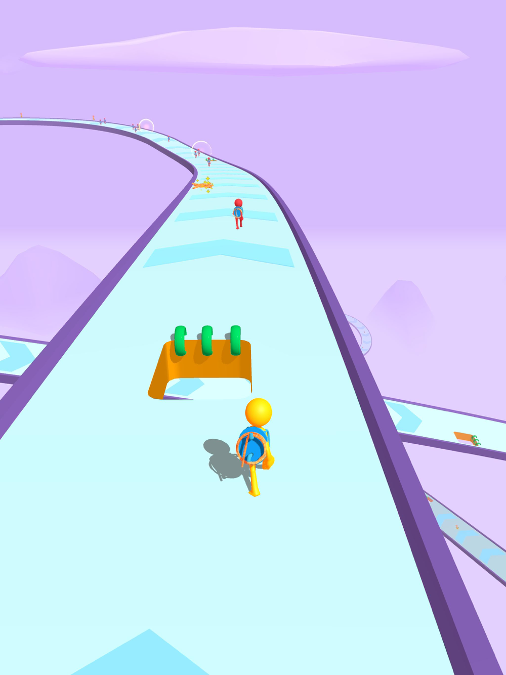 Collect ropes, swing through the holes and outpace your opponent! It will feel like cheating and you will love it!