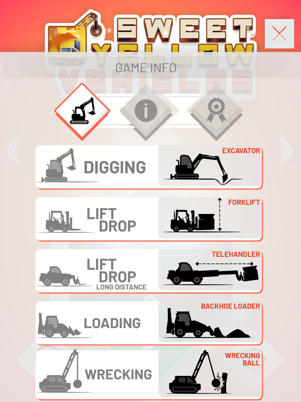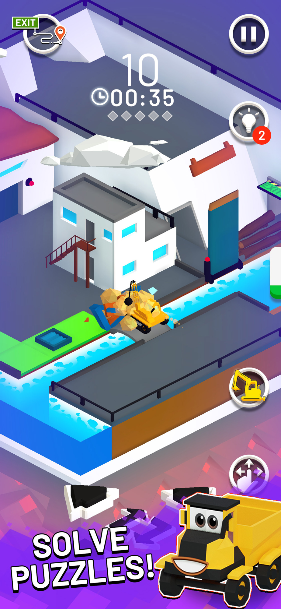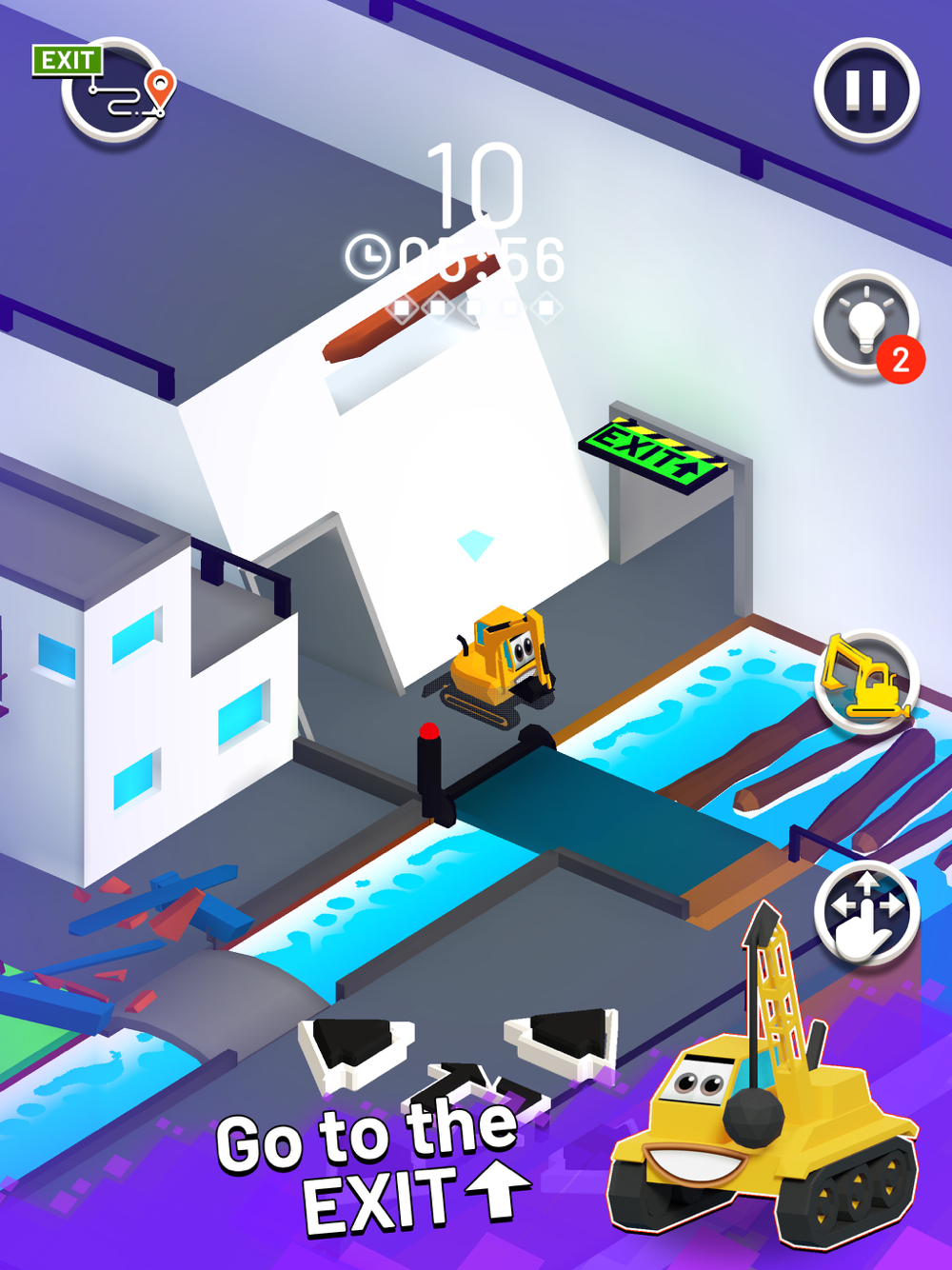 Try to pass the stages in the level by using the features of earthmoving vehicles such as LIFTING, DIGGING, DEMOLITION.