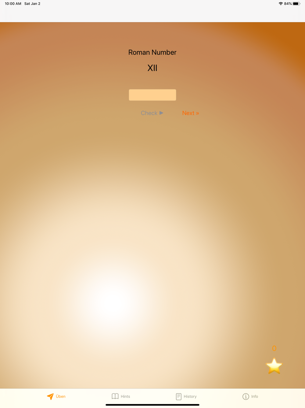 The app is designed to be as simple as possible. This is great for children as it is super easy to use. The app generates a random task with a roman number shown. Enter the decimal number and the app shows, whether it was correct or not.