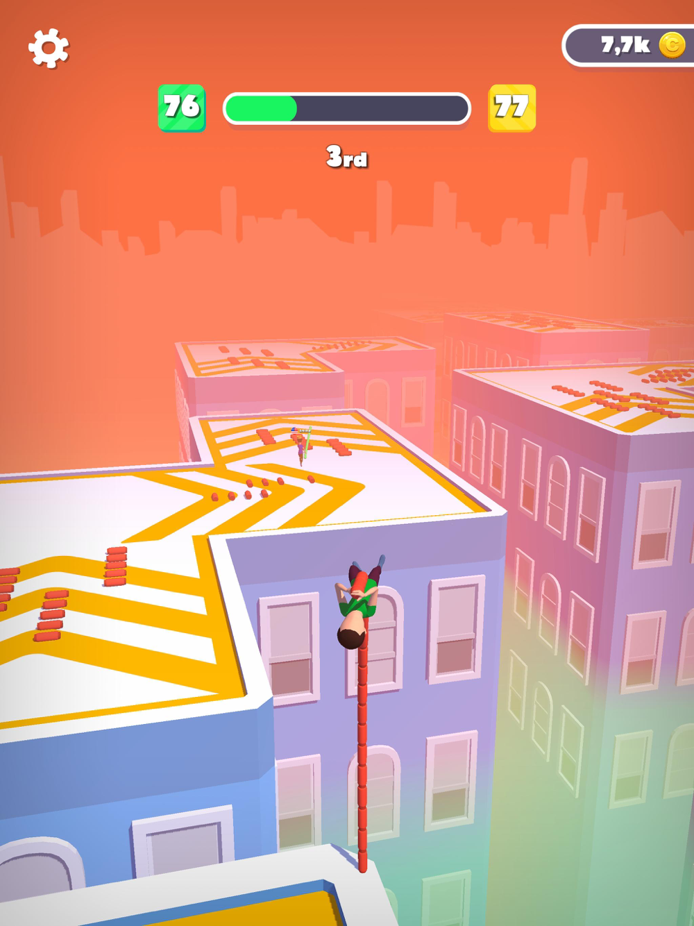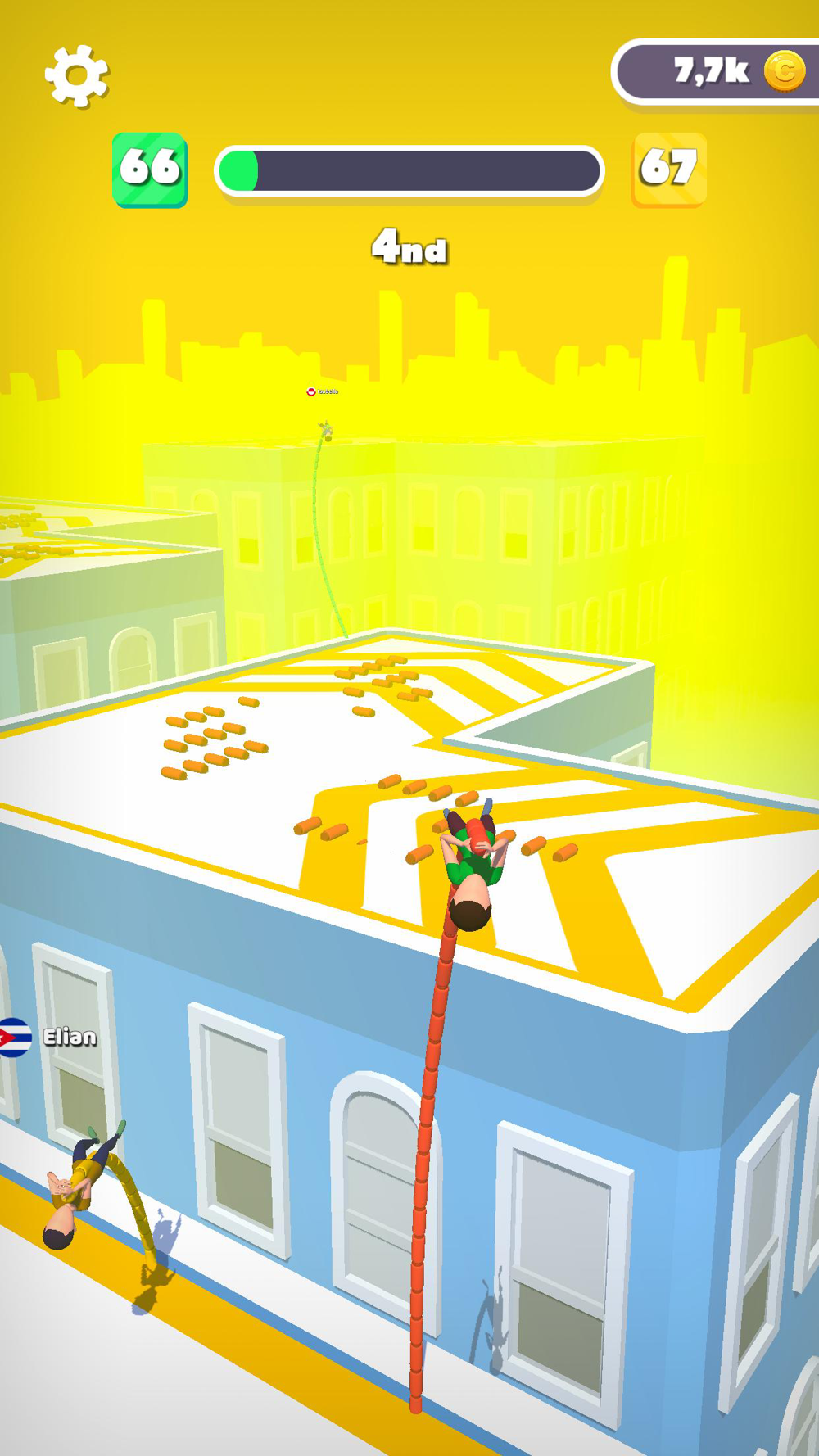 Start running, don't look back, collect the pole pieces and pass your opponents. Be careful, you may find yourself falling from the skyscraper while taking the short route.