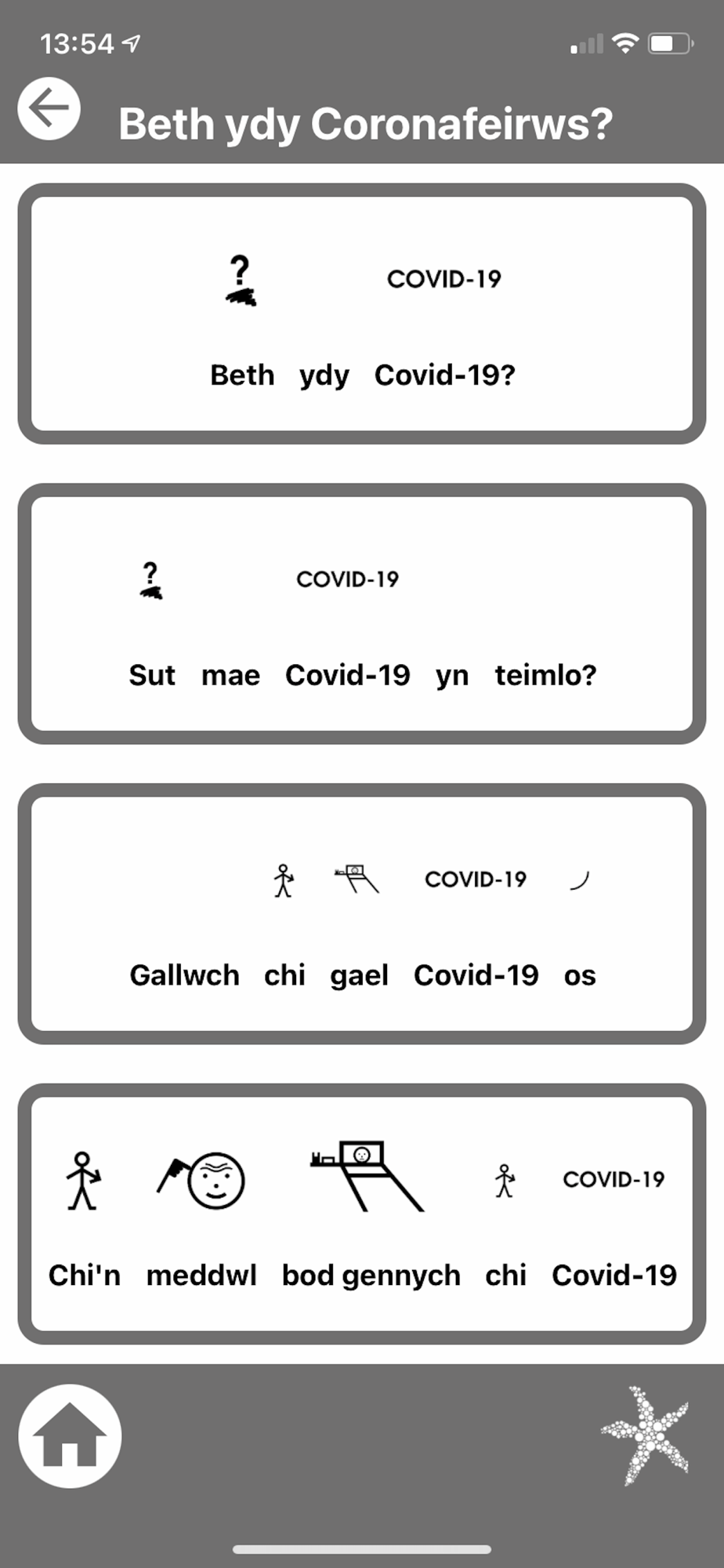 This app has been part funded by Welsh Government. Starfish Labs acknowledge the support of Welsh Government and Derwen College in the creation of this app. All imagery, graphics, voice content, workflow system and development © Copyright Starfish Labs 2021.