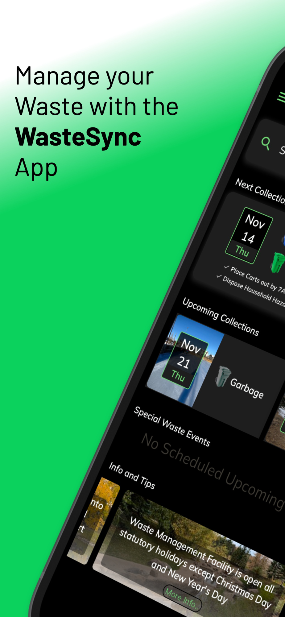 WasteSync Red Deer lets you organize your waste disposal by providing a Waste Collection Schedule, Waste Sorting tool and Waste Collection notifications.