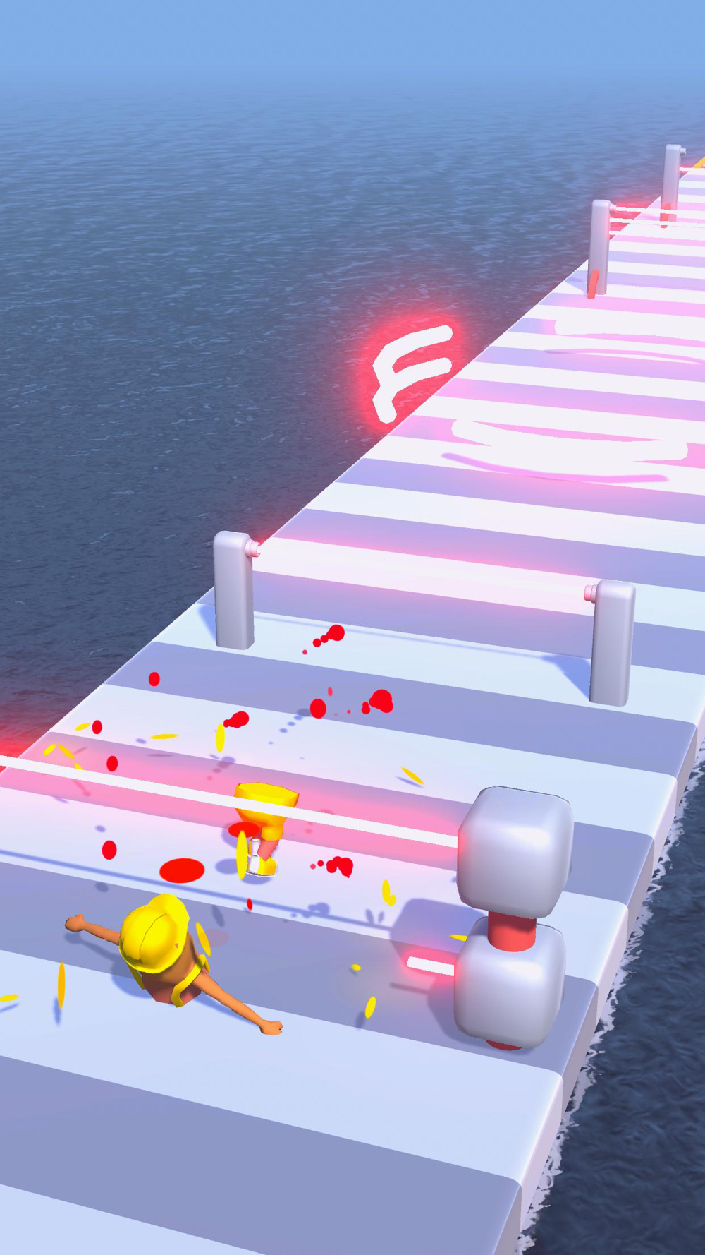 Be careful with the lasers while running, but if you get cut, you can continue.