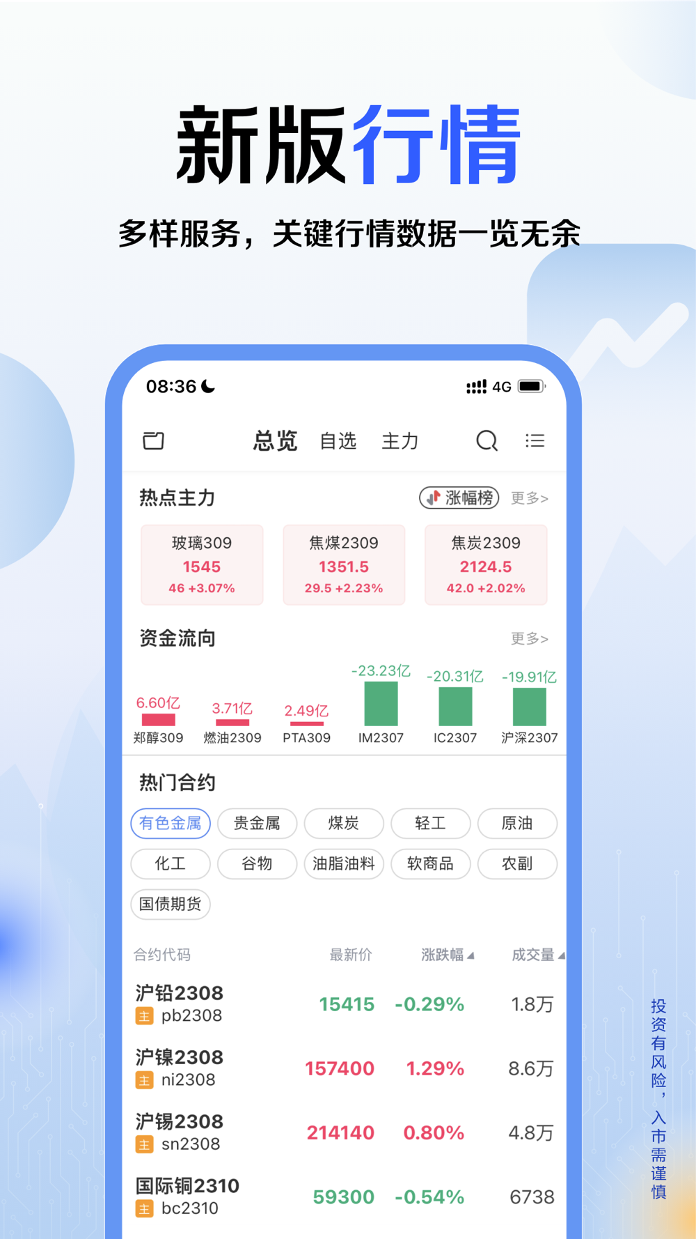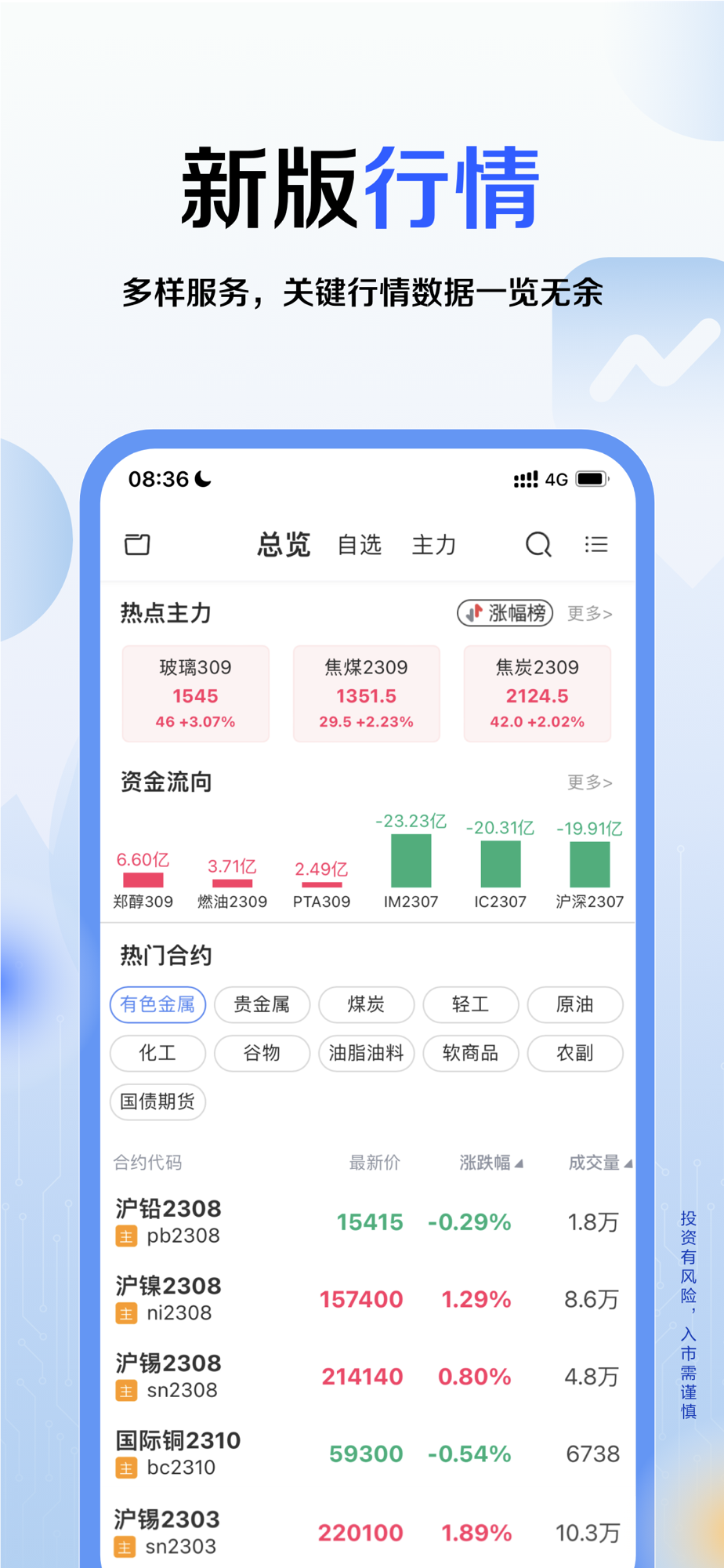 资讯全面:7*24小时洞察市场热点、板块资金及品种资金流向,集成郑商所五档行情,上交所五档行情国内全部期货品种行情数据源,实时高频行情等深度服务,投资研报分析大盘走向,掌握行情动态。