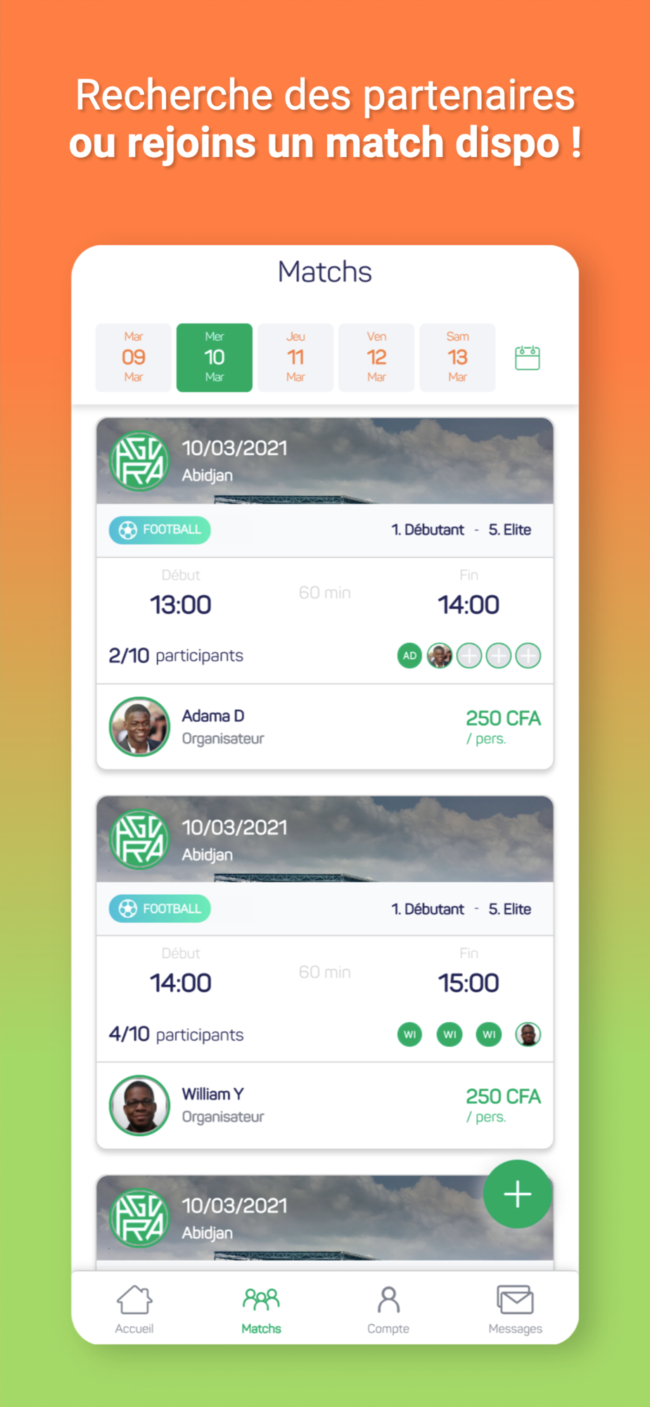 Consulte les matchs proposés par les autres joueurs. Dès que tu as trouvé le match qu'il te faut, inscris-toi !
