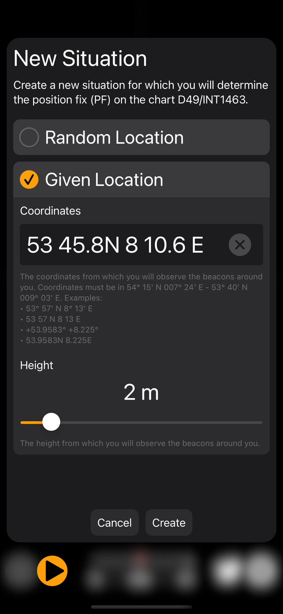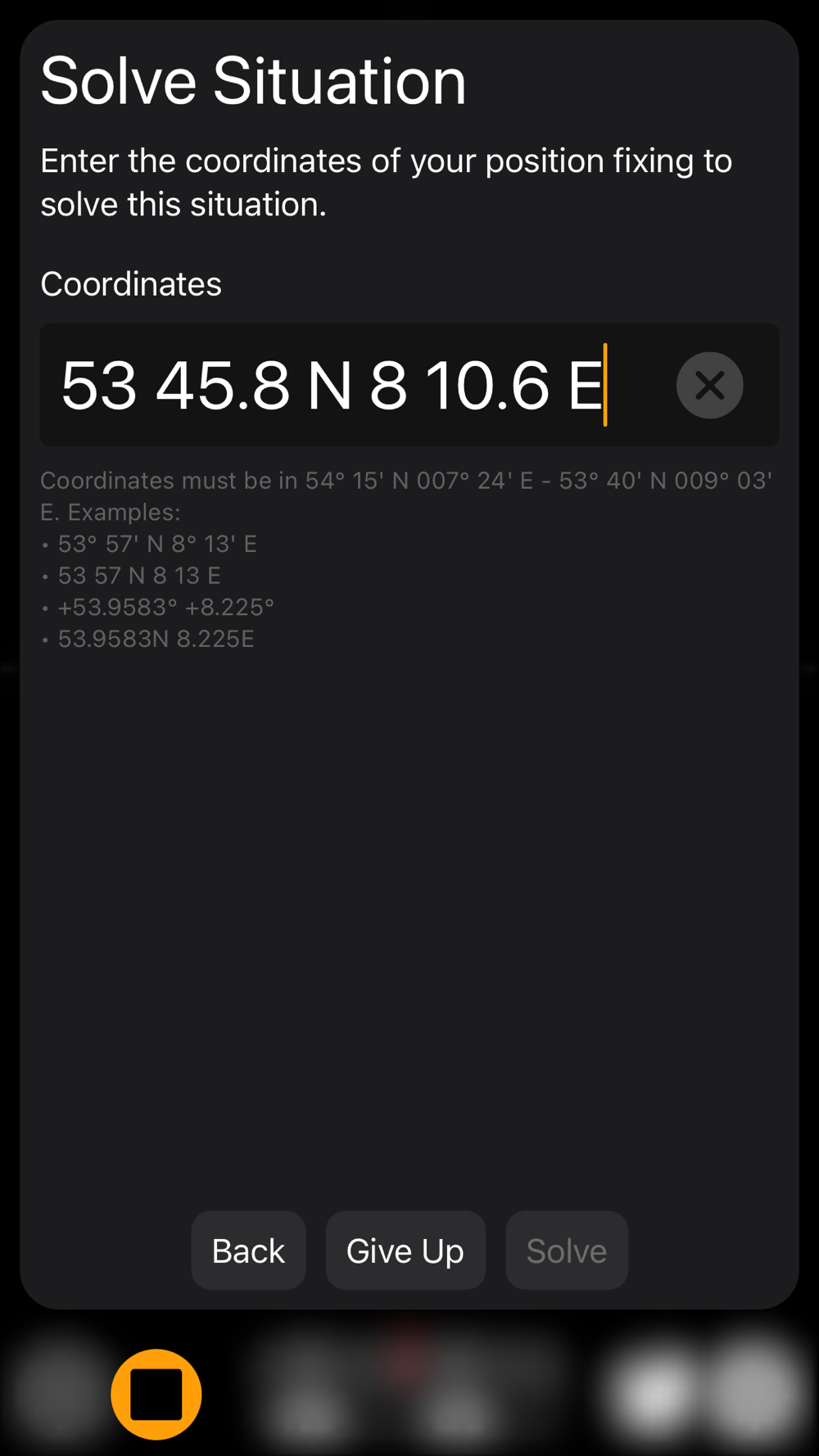 "Fix at Night" turns your iPhone into a window/binoculars into the night. From a position on the training chart D 49/INT 1463 you observe the beacons and nautical lights around you and take their bearings. After you got a position fix you enter the coordinates into the app which then will tell you how far your position is off. The smaller the difference the better!