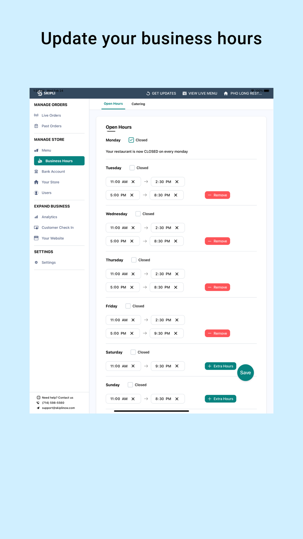 This app allows you to manage your business’s orders on Skipli in a single, centralized place. Whether you’d rather have a single device in your store or an app that all your staff can use on their own phones. Here's what Skipli For Business app offers: