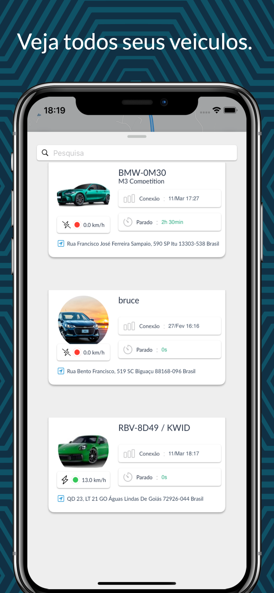 Com o aplicativo você terá seu carro na palma de sua mão, com mais segurança e confiabilidade, podendo acessar dados dele a qualquer hora e em tempo real.