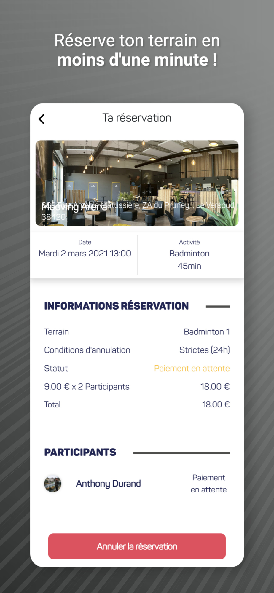 Fini la corvée de réservation ! Avec l'application tu n'as plus qu'à accéder aux créneaux disponibles et à en choisir un. Le club recevra alors automatiquement ta réservation.