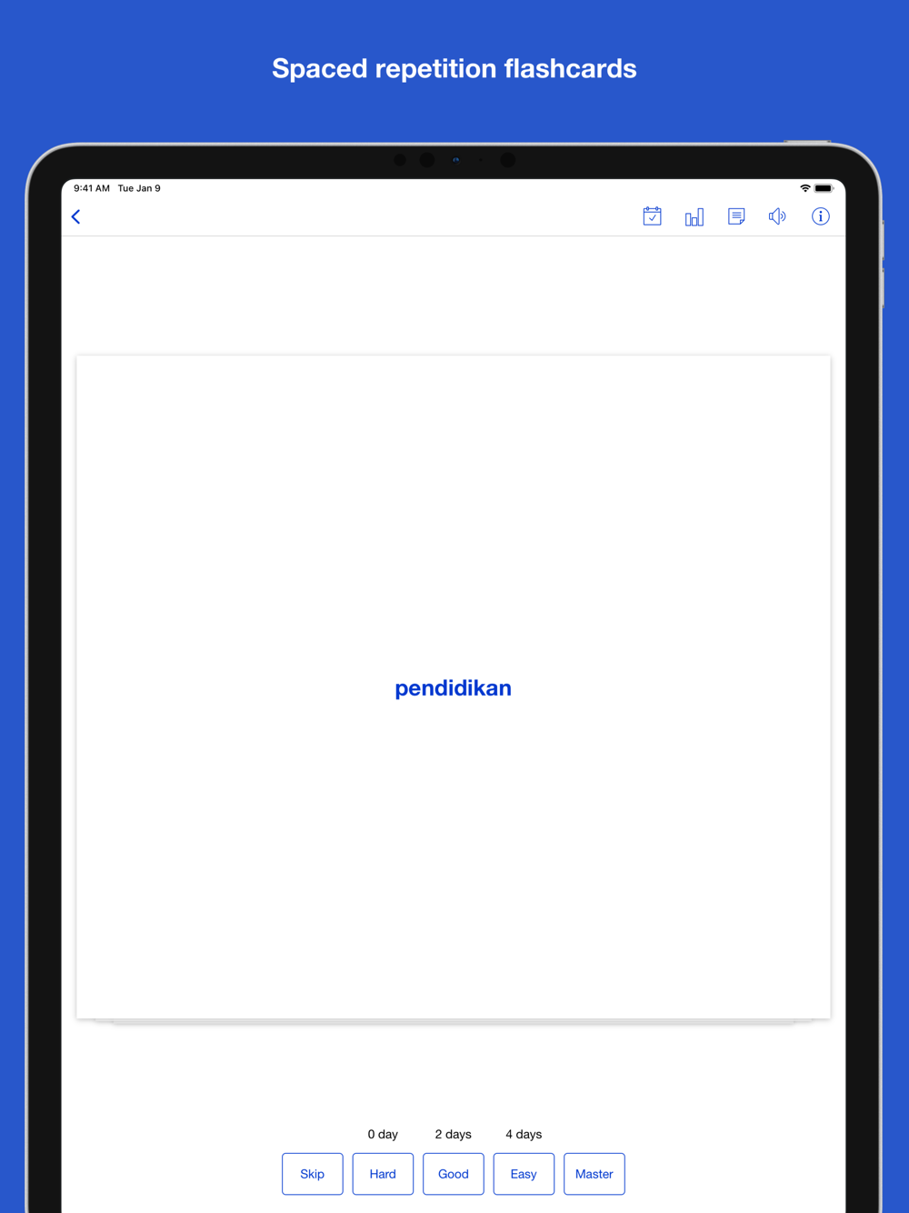 • Use flashcards to learn Indonesian vocabulary and sentences