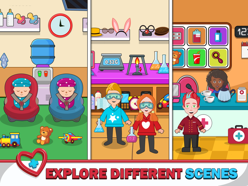Welcome to pretend play games where you are allowed to touch and interact with everything! Use your imaginations and creativity to explore, we present you another pretend game where you create your own hospital story in this super exciting town hospital life adventure. Get ready to play different roles of hospital staff such as doctor, nurse, receptionist, patient and much more. Have fun in the pretend town hospital, interact and play different roles of pretend city hospital. Each pretend town hospital room is available for some extreme house fun.