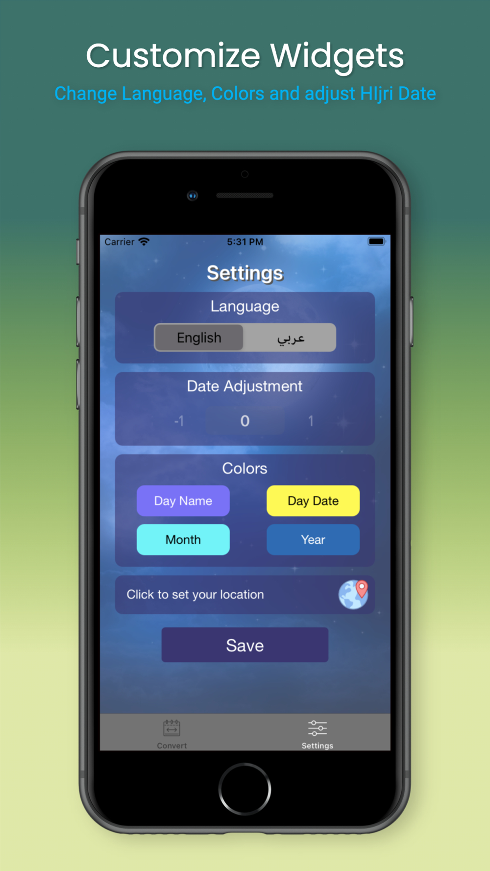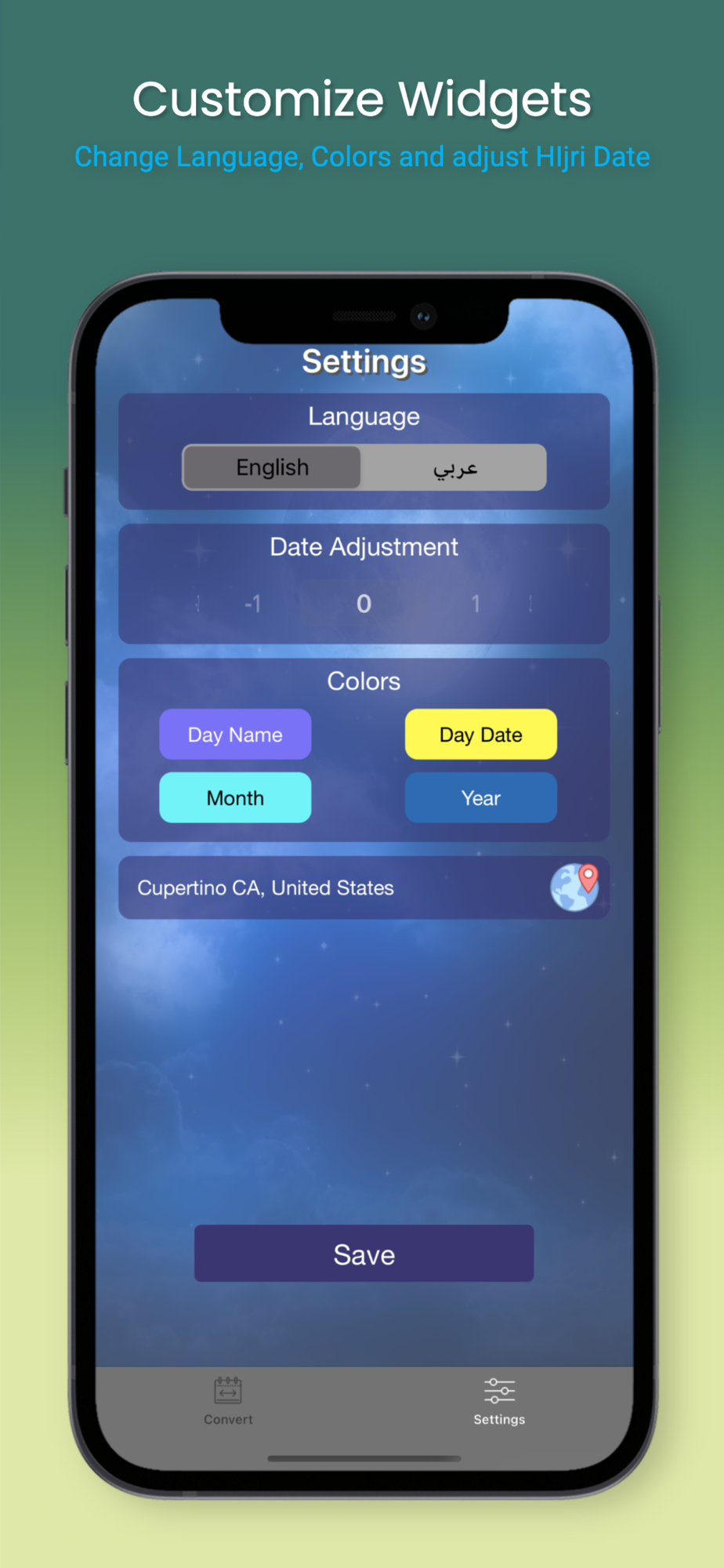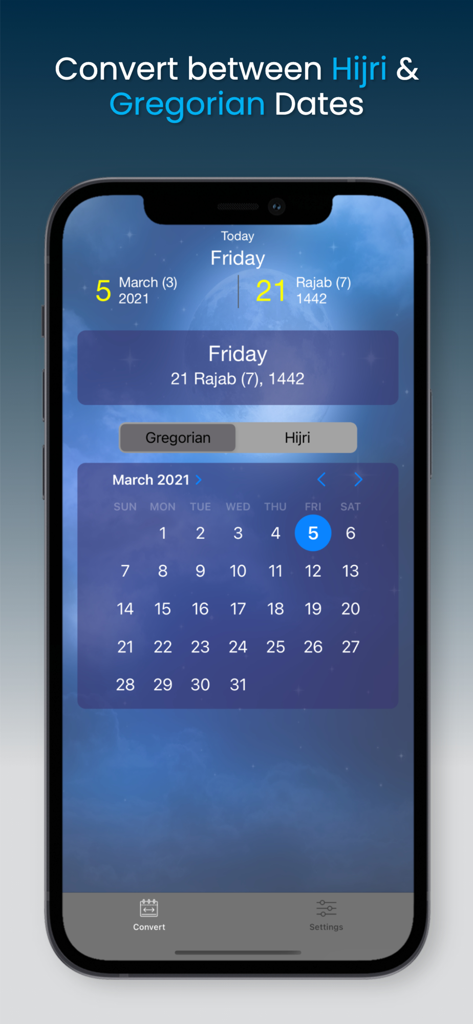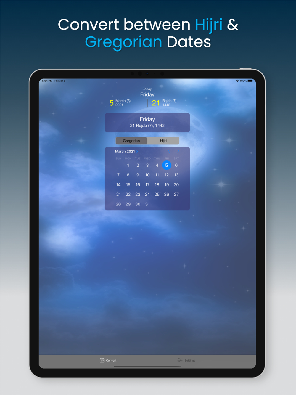Great widgets that show Hijri & Gregorian dates, Prayer times, Sunrise/Sunset times, Moon phases, and Calendar events.