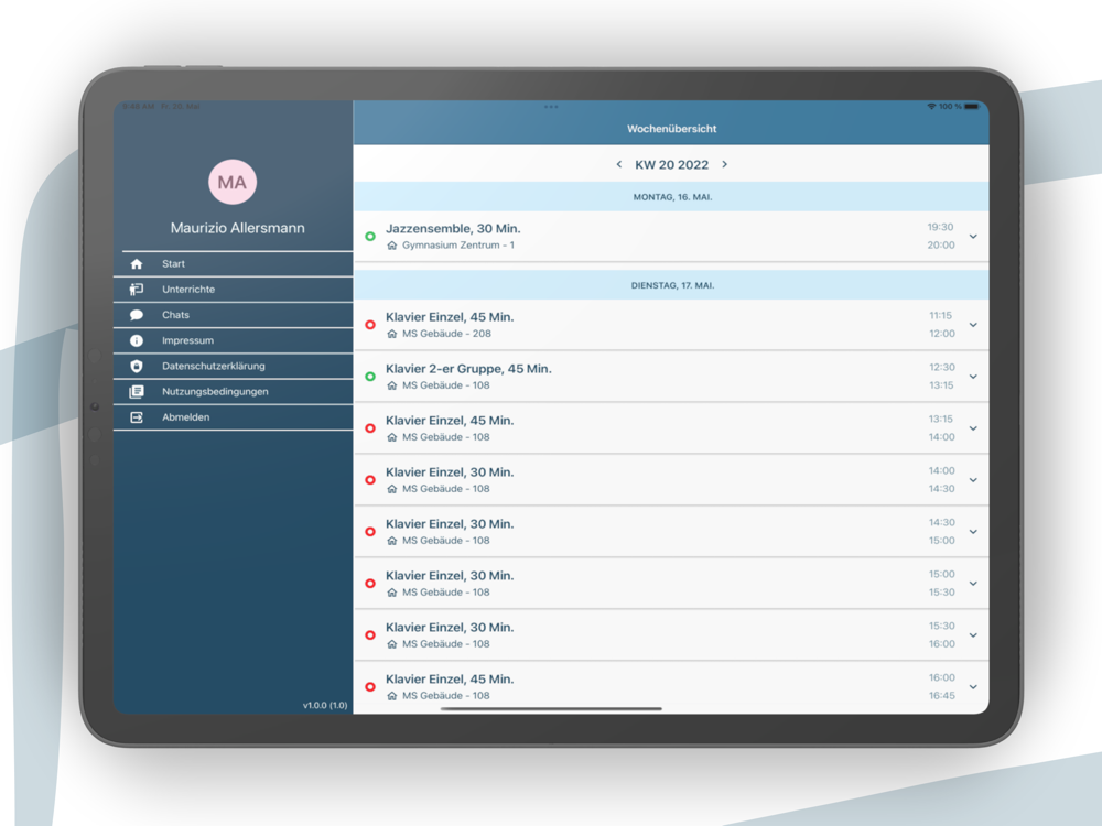 Mit unserer Demo-App können Sie kostenlos und unverbindlich alle Funktionen testen. Die App ist mit der Demo der AMADEE Musikschulverwaltung verknüpft.