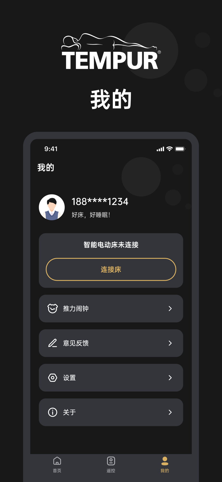Tempur是一款基于蓝牙连接智能电动床的工具型APP,不仅为智能电动床提供了便捷的手机遥控功能,还提供了利于睡眠的音乐,伴您一夜好眠。