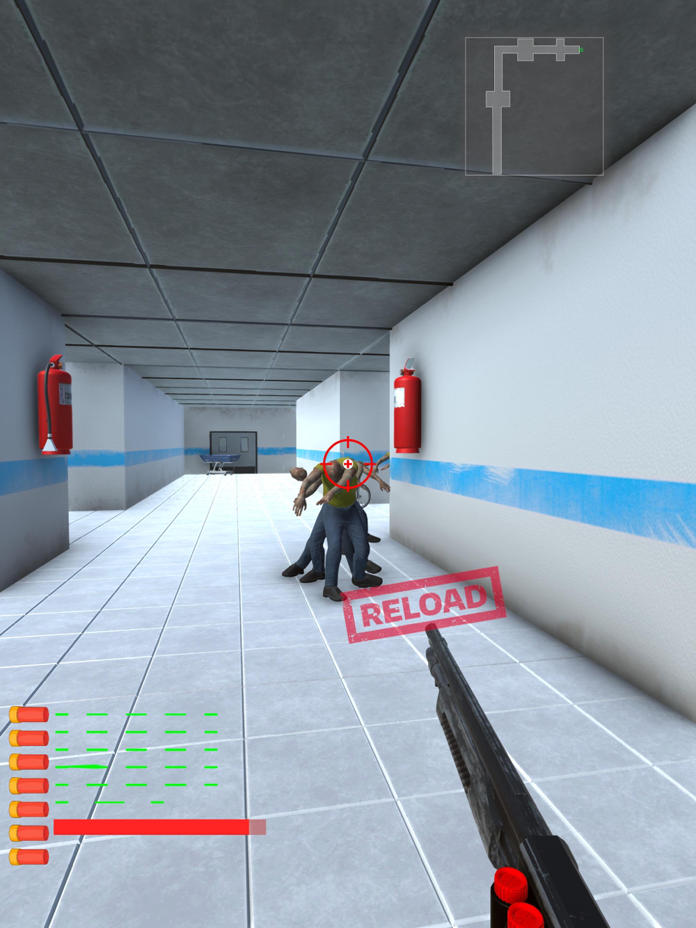 The zombies are after you! You can clear the hospital from zombies by shooting them all with the joystick.