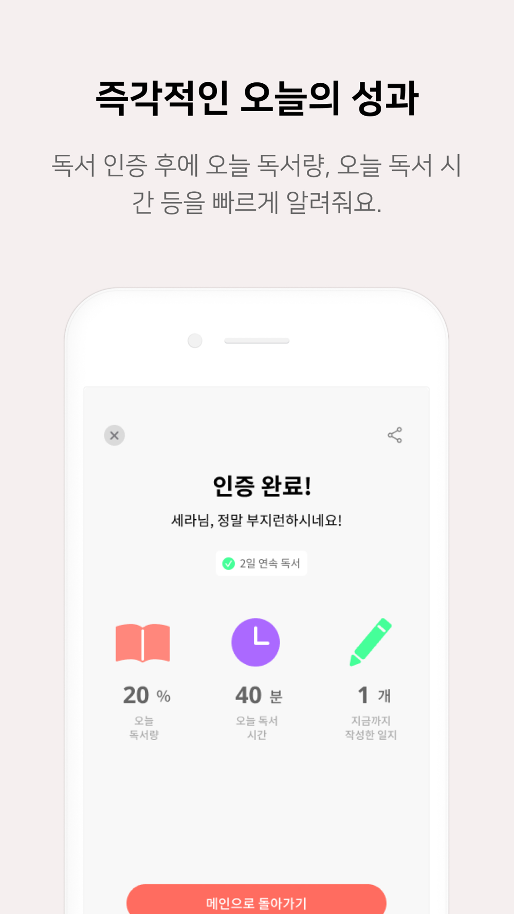 - 독서 시작하기 버튼을 눌러 인증을 시작, 일지를 작성합니다.