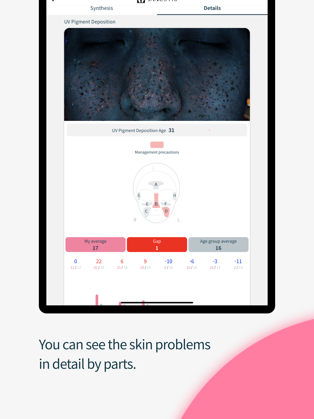 Check the condition of your skin by viewing the comprehensive results and detailed results!