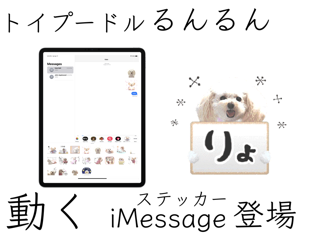 トイプードルるんるんが、動くステッカーでかわいくメッセージのお手伝いをします。犬好き、動物好き、トイプードル好きな方へ。