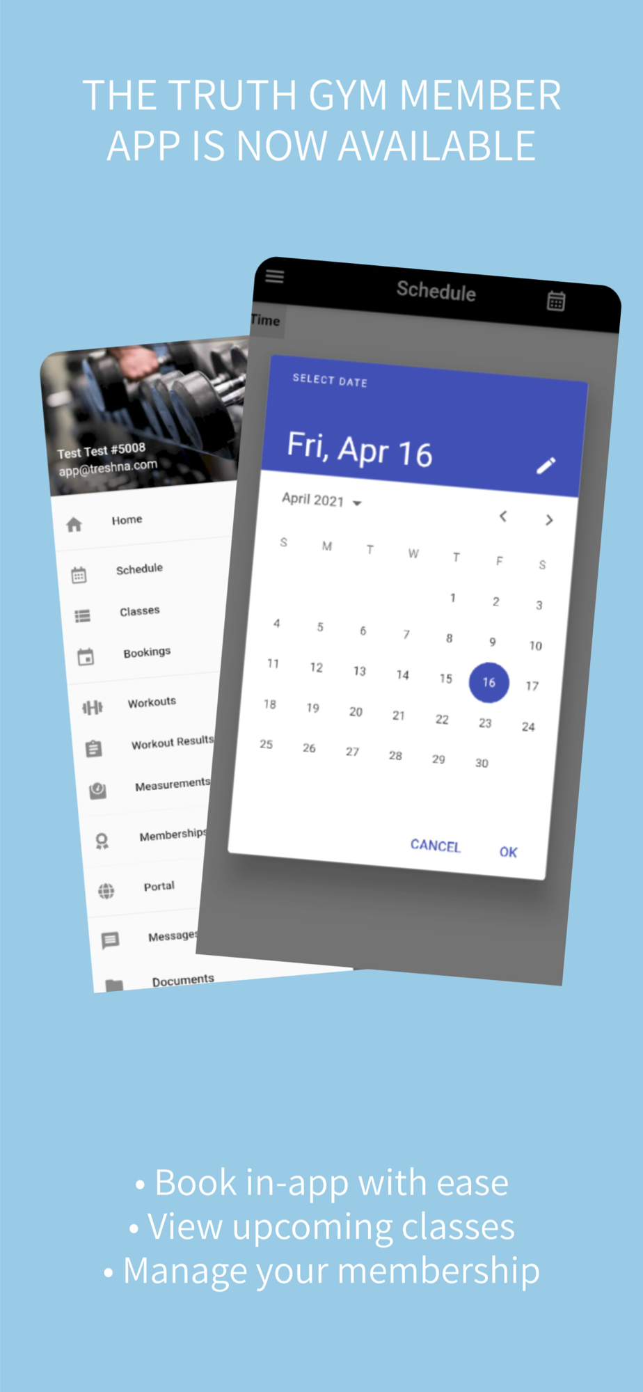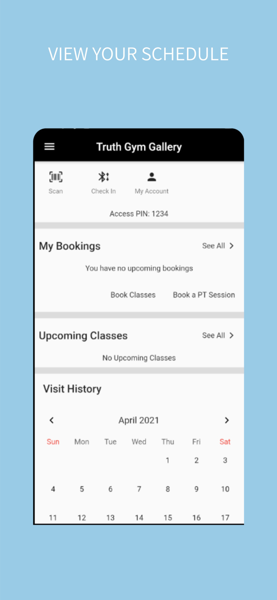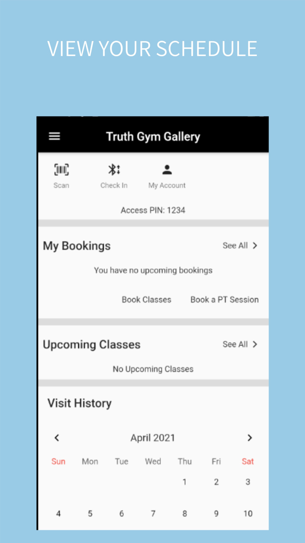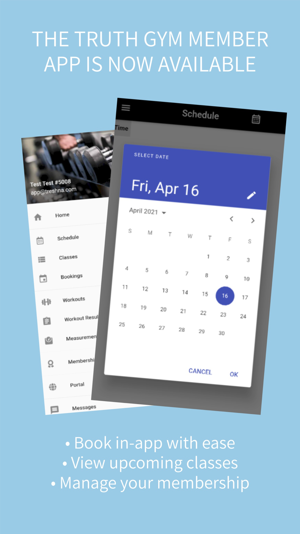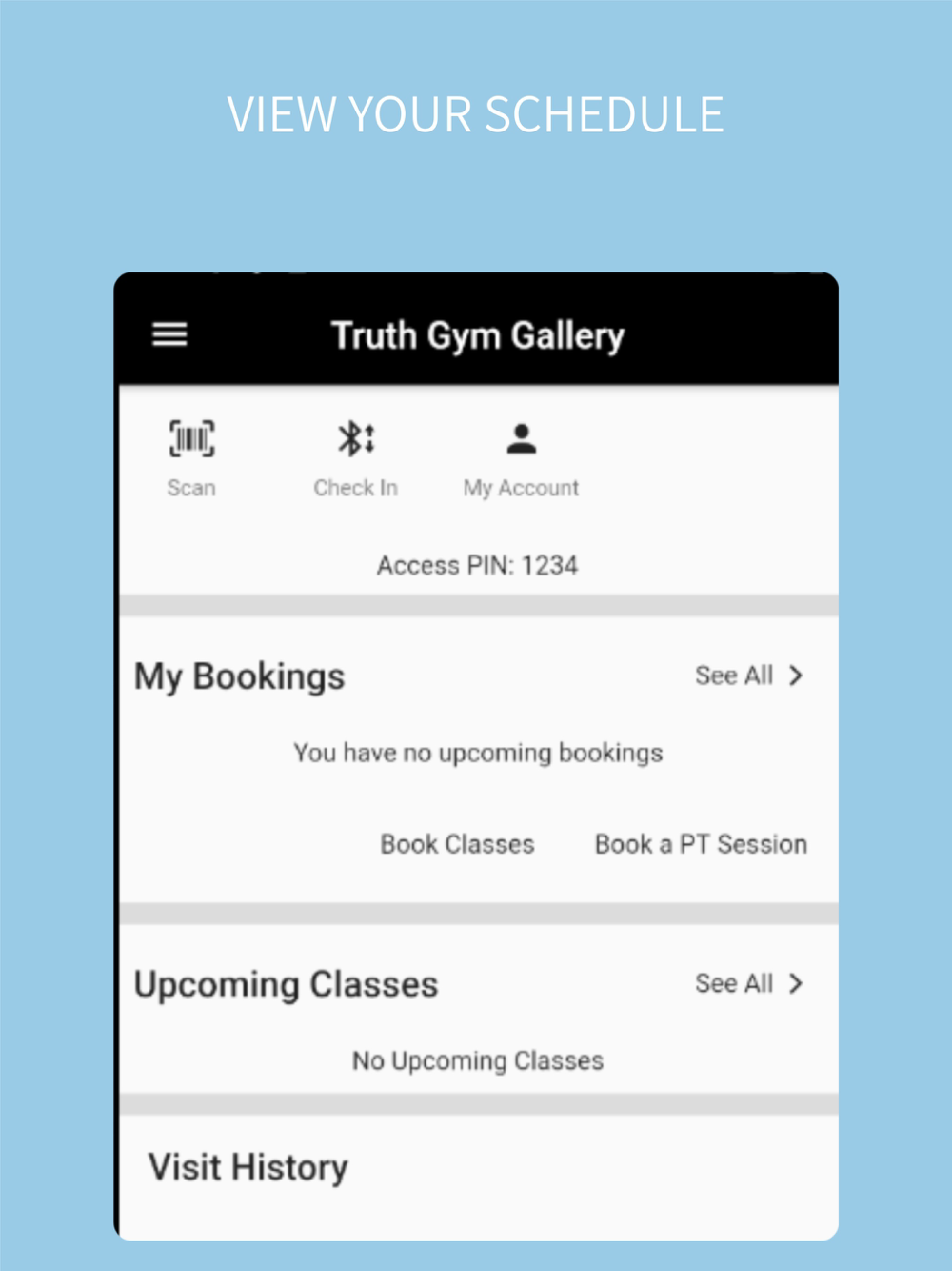 Now it's easier than ever to plan your workout sessions alongside your schedule. Book your workout sessions on the go, keep your profile up to date using the Truth Gym Gallery App