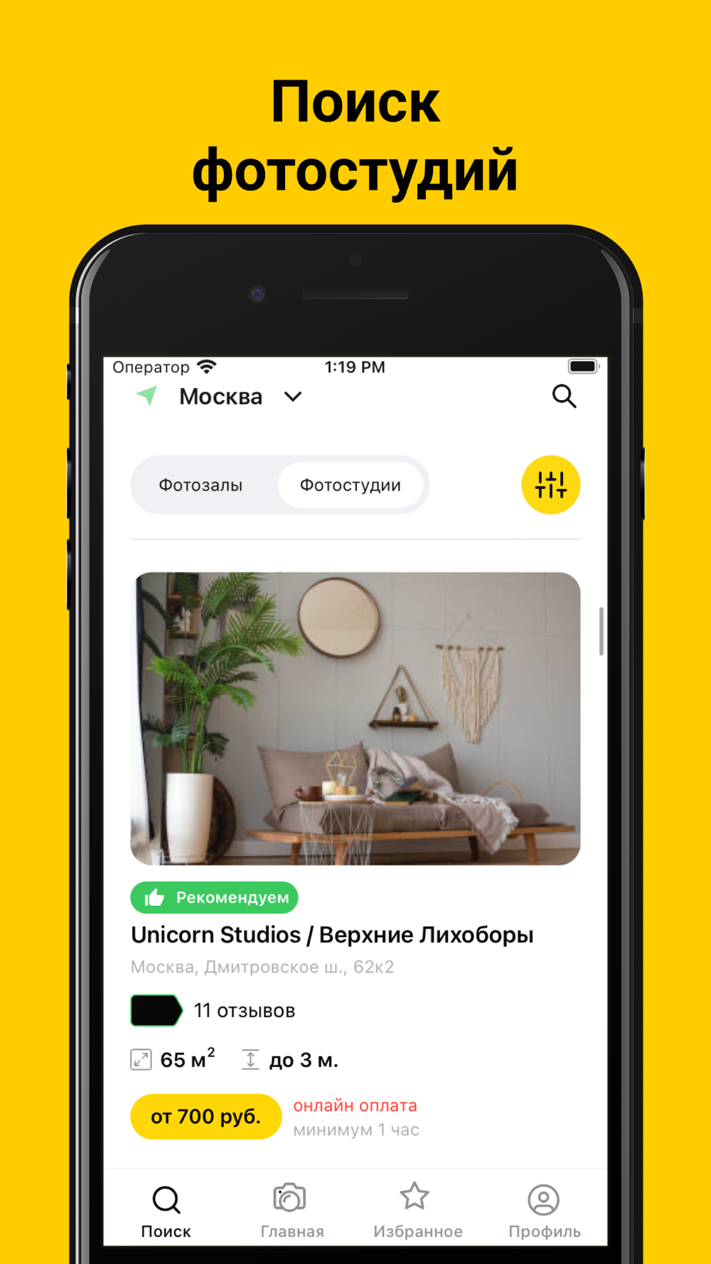 Каталог интерьерных фотостудий в одном приложении.